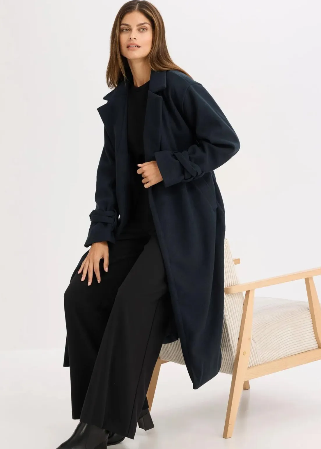 Oversized Mantel mit Bindegürtel und zweifacher Riegel an den Ärmeln