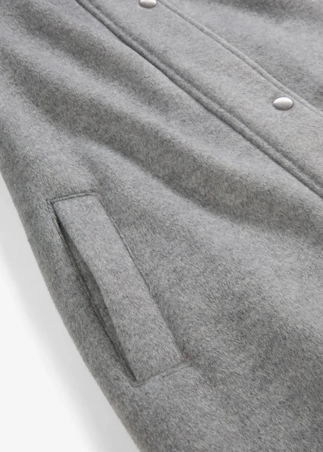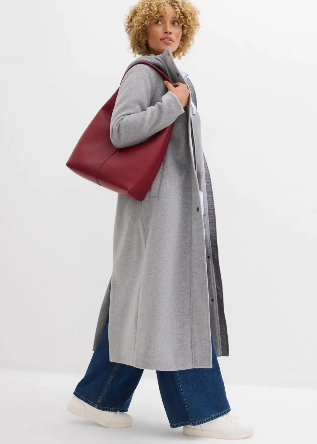 Lässiger Longmantel in Wolloptik mit Kapuze und Kordelzug, seitliche Eingriffstaschen