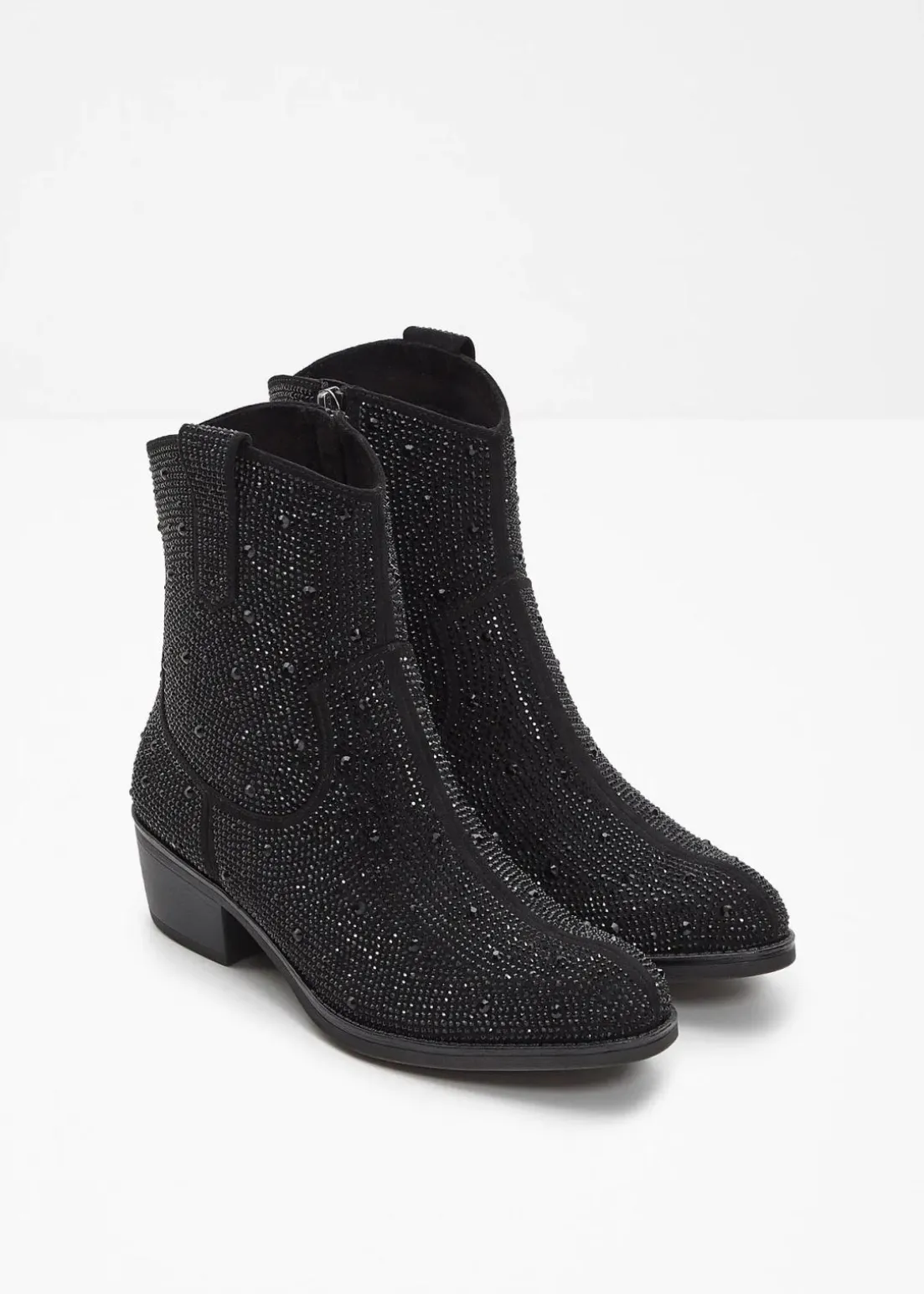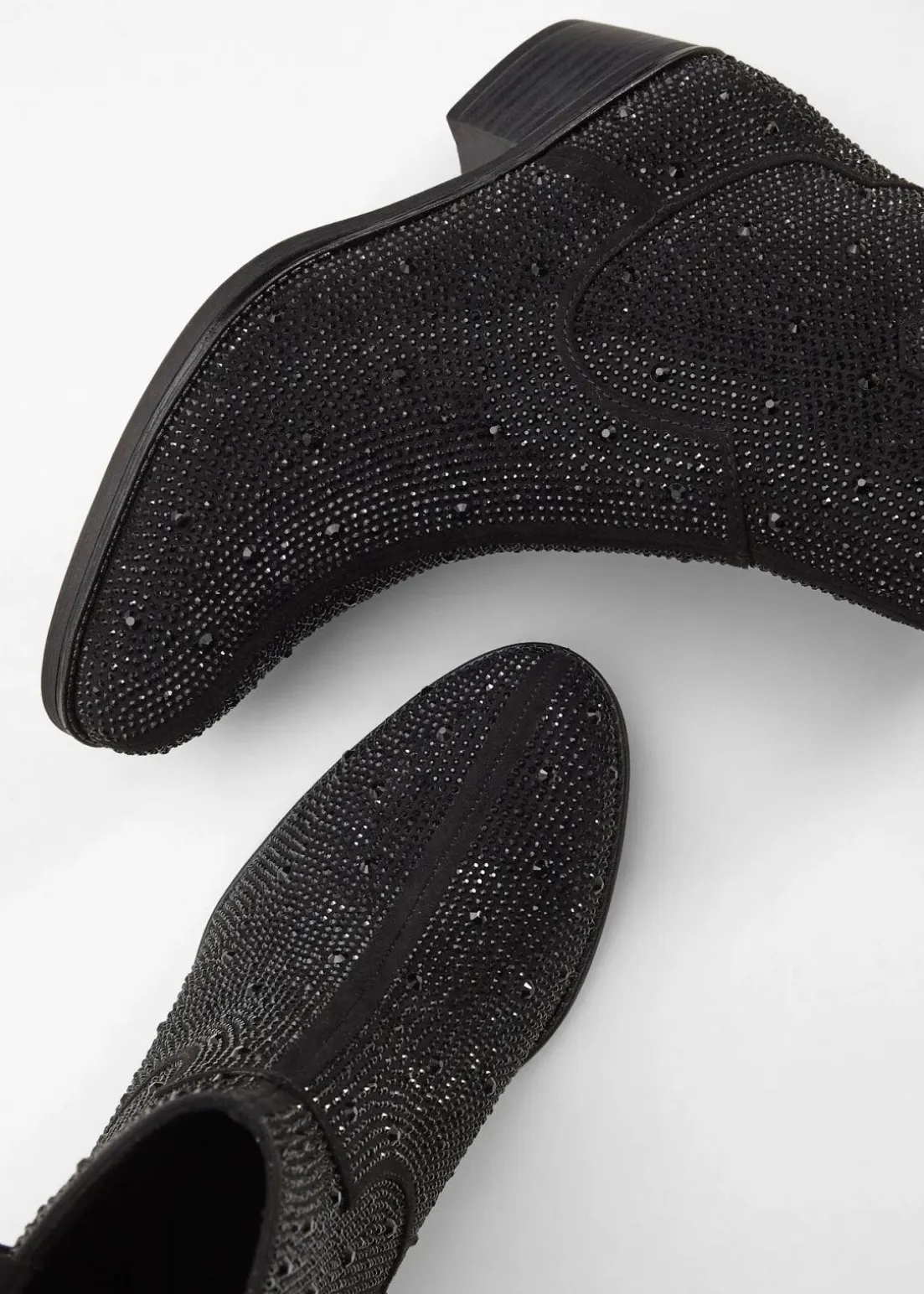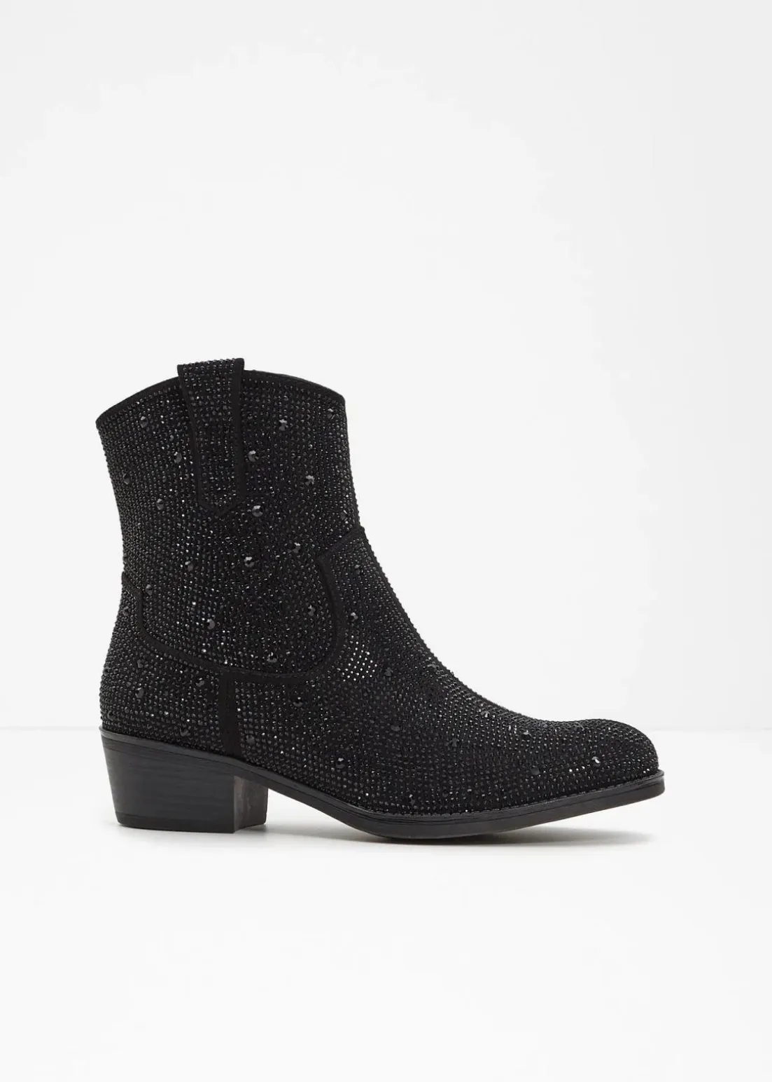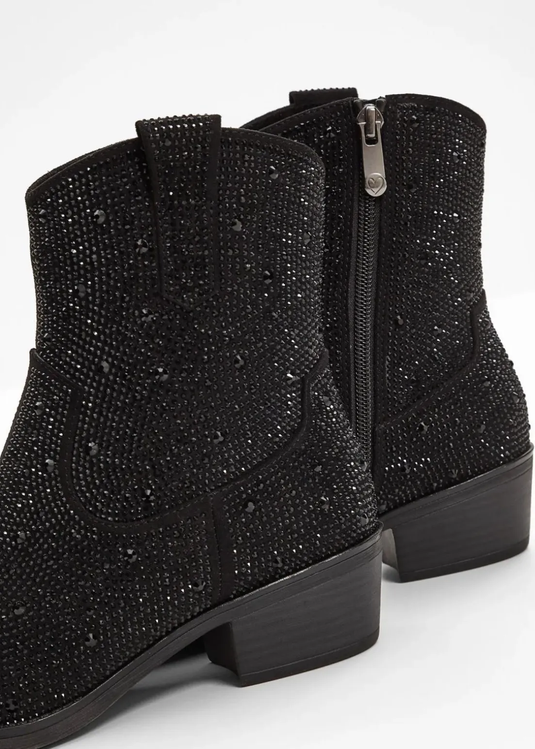 Schöne Marco Tozzi Cowboy-Stiefelette mit funkelnden Allover-Glitzersteinen für einen stilvollen Auftritt