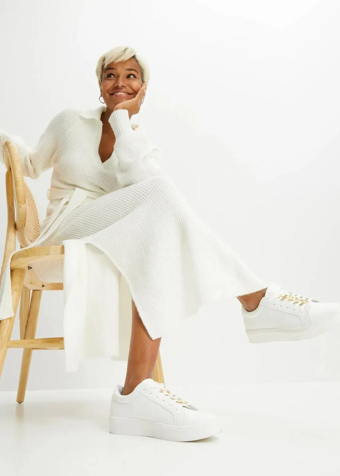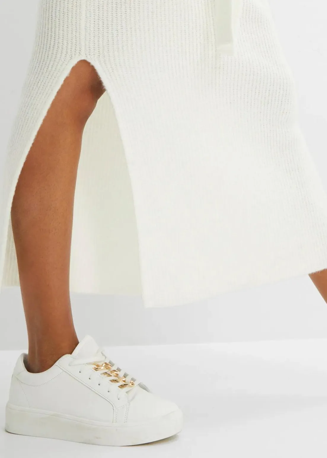 Modisches Strickkleid mit Polokragen und Ballonärmel