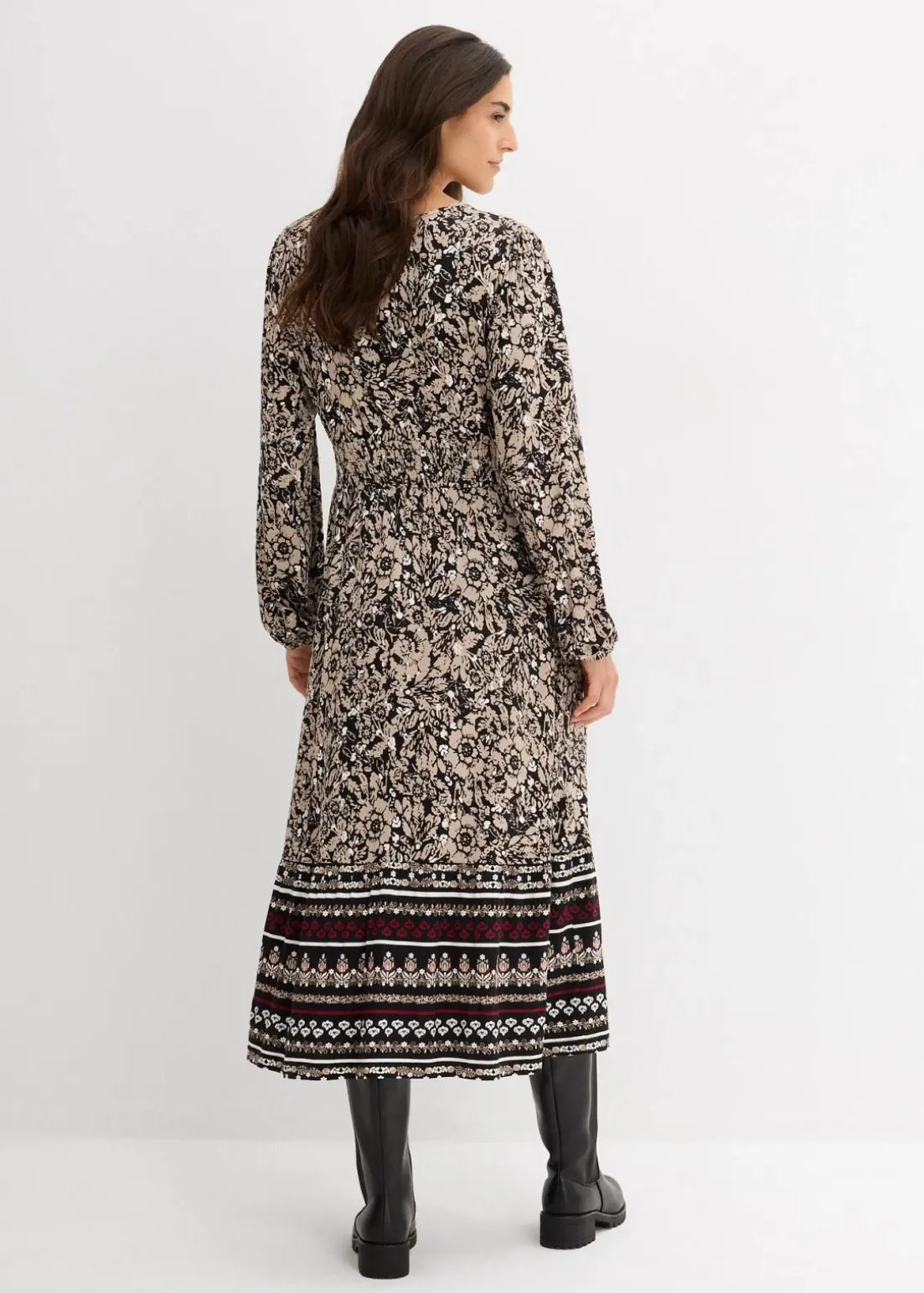 Maxikleid mit tiefem V-Ausschnitt und langen Ballonärmeln