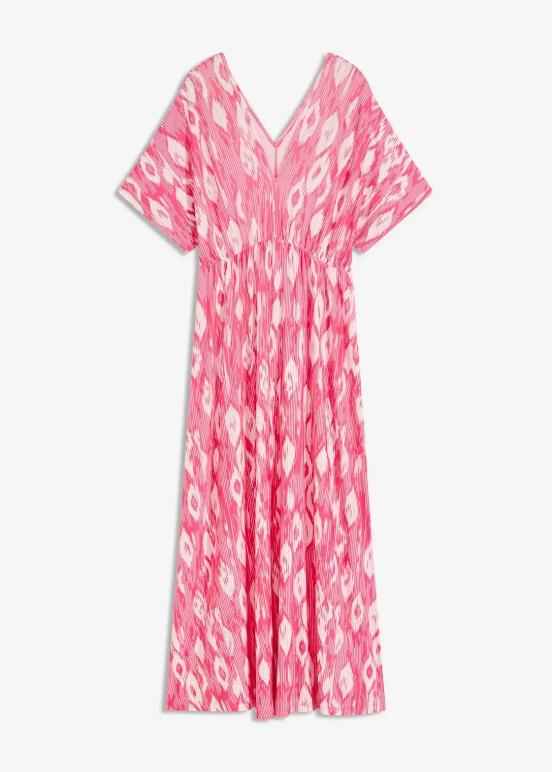 modisch bedrucktes Jerseykleid in Maxilänge mit weit geschnittenen Ärmeln und tiefem V-Ausschnitt vorne
