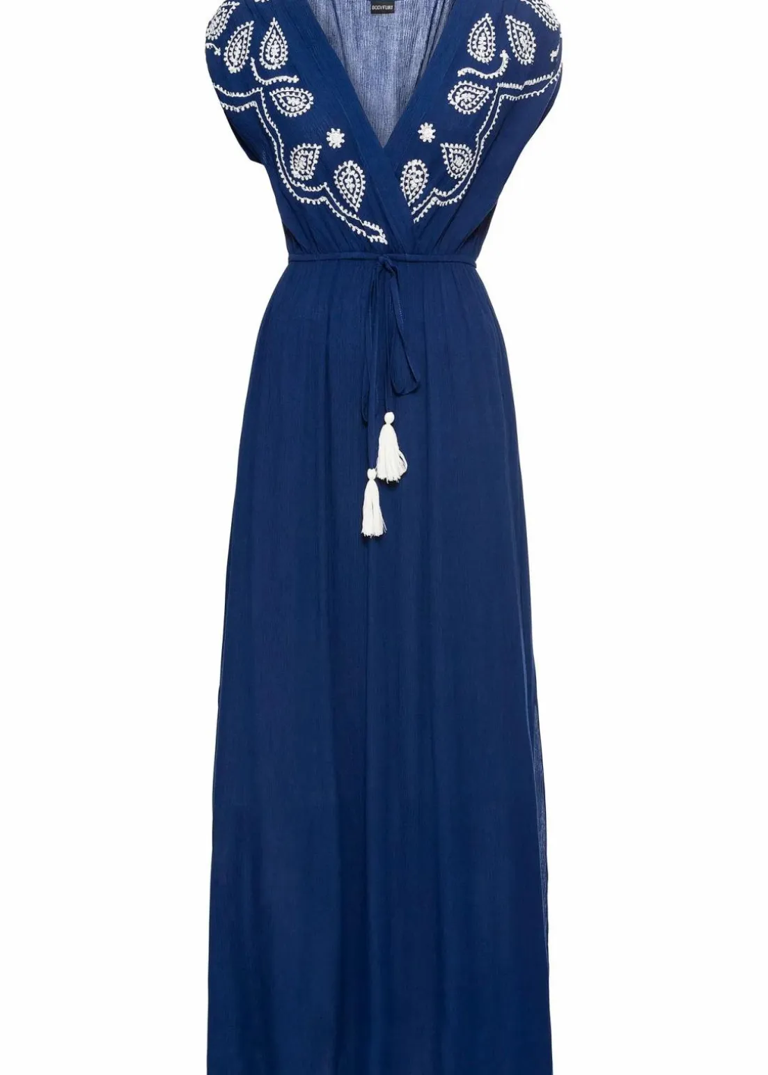 Ärmelloses Maxikleid mit Verzierung und Bindeband