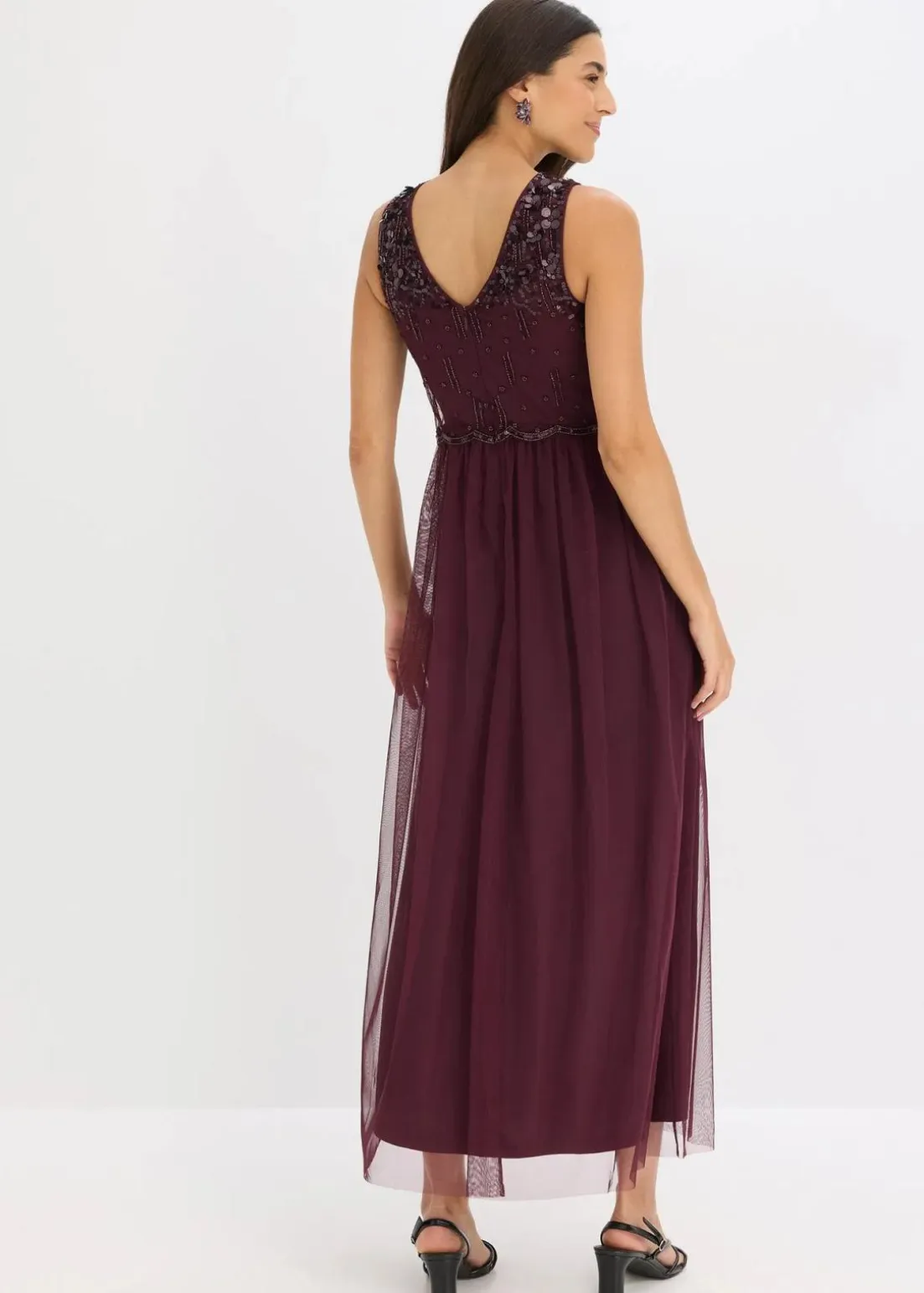 Elegantes Kleid mit hochwertigen Perlen und Pailletten bestickt