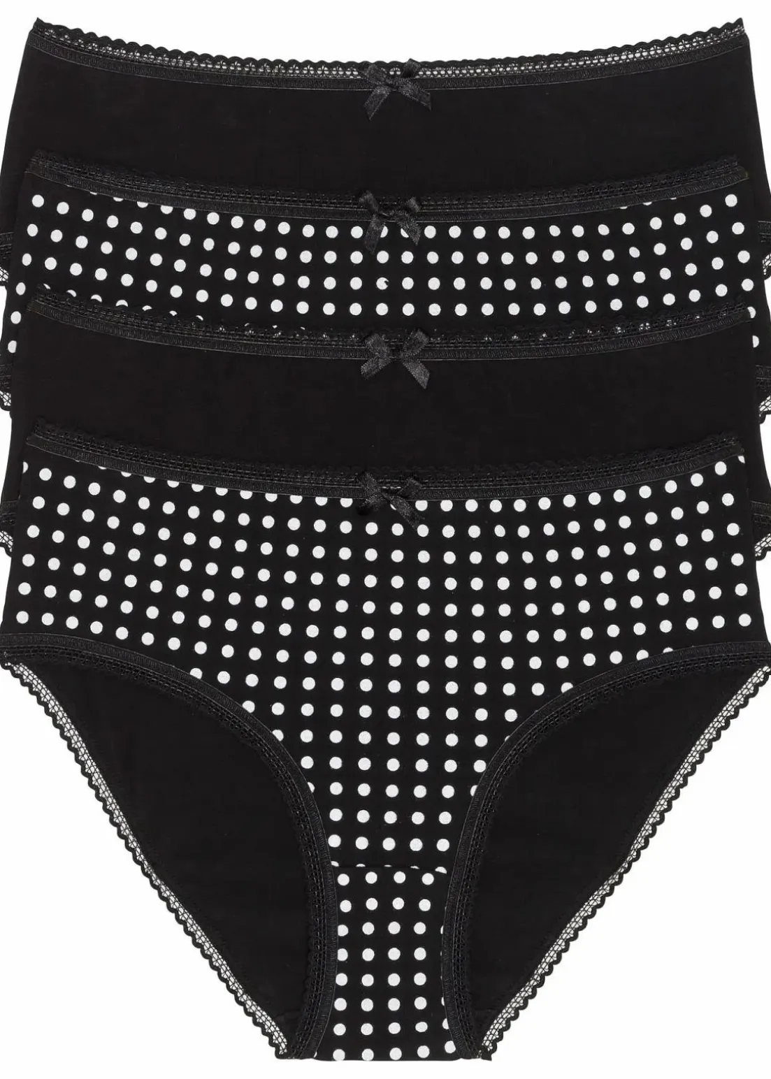 Gleich mehrfach bequem: Das Vierer-Set mit angenehm weichen Maxislips steht für ein hervorragendes Tragegefühl und sieht dabei auch noch herrlich feminin aus. An der Vorderseite des Bündchens ergänzt eine dekorative Schleife das stilvolle Design der Unterhosen. Für noch mehr Blickfänge sorgen die anschmiegsamen Bogenkanten in transparenter Spitzen-Optik. Die figurnah geschnittenen Slips erweisen sich als ideale Wahl, um gleichzeitig auf einen attraktiven Look und einen hohen Komfort zu setzen. Der Zwickel besteht aus Baumwolle.