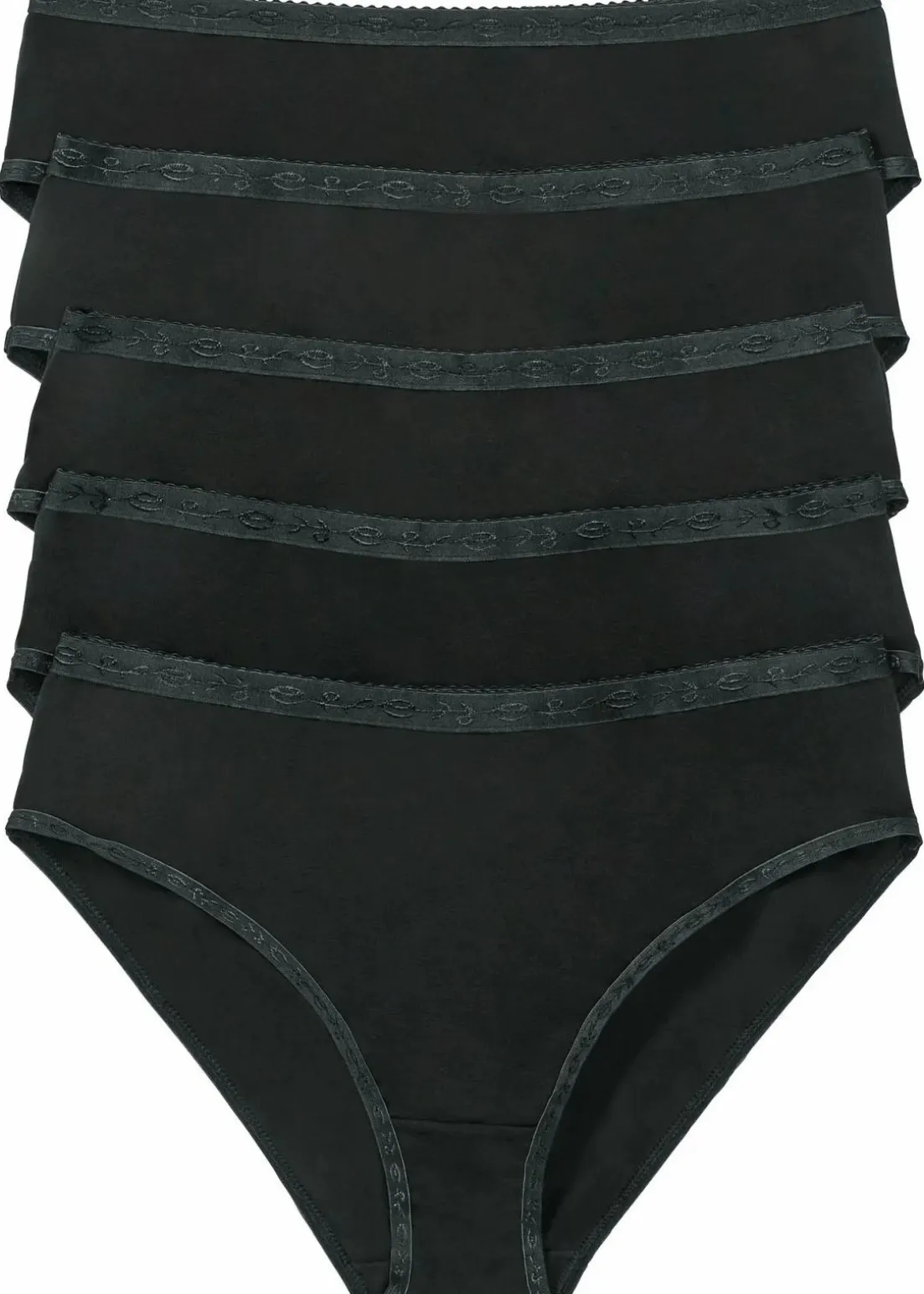 Dieser Maxislip der Marke bpc sorgt für einen guten Tragekomfort im Alltag und ist im praktischen Fünferpack erhältlich.Das weiche, anschmiegsame Material passt sich der Figur angenehm an und die elastischen Bündchen verleihen einen bequemen Sitz. Die Elastik-Einsätze sind mit schönen Verzierungen gestaltet und der obere Bund schließt mit einer feinen Zierkante ab. Der Zwickel besteht aus Baumwolle.