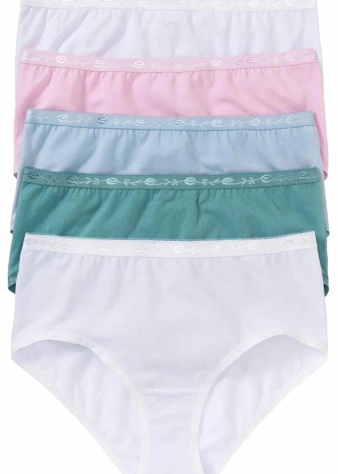 Komfort wird bei diesem Maxislip der Marke bpc groß geschrieben. Der hohe Schnitt verleiht gemeinsam mit dem weichen Material eine perfekte Passform. Modisch wirken die schmalen Verzierungen am oberen Bündchen sowie an den Beinabschlüssen. Der Zwickel besteht aus Baumwolle. Mit dem praktischen 5er-Pack erhalten Damen attraktive Slips für jeden Tag. Drei verschiedene Farbtöne befinden sich in jedem Pack.