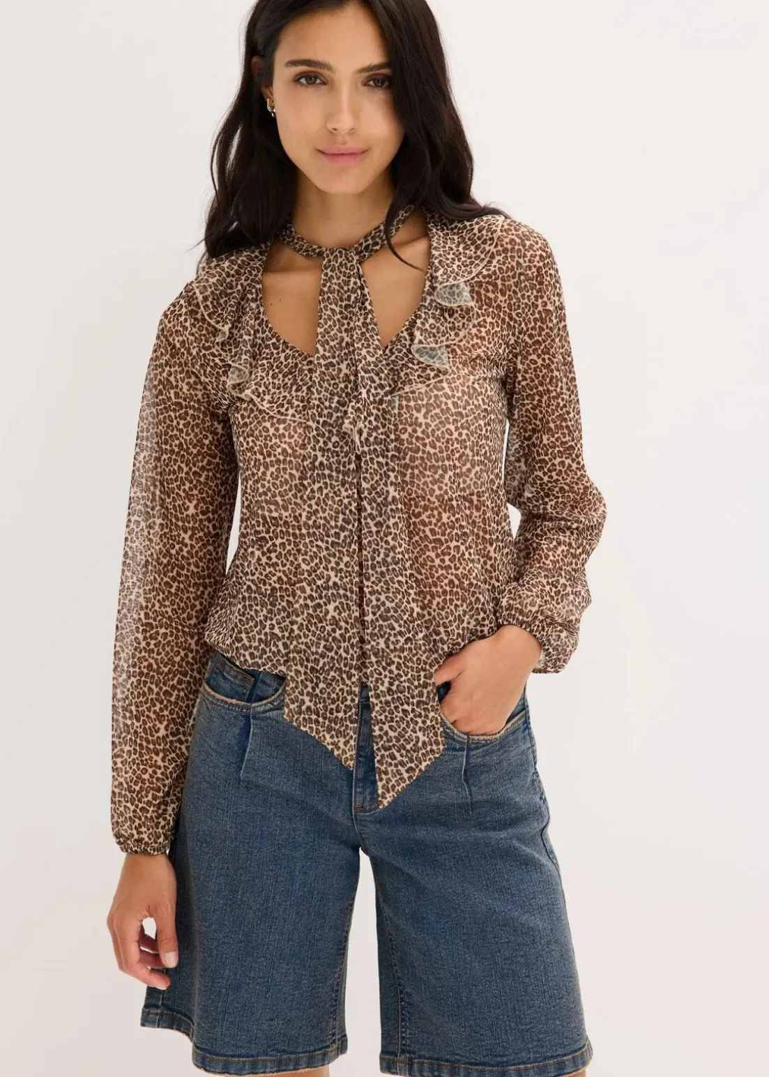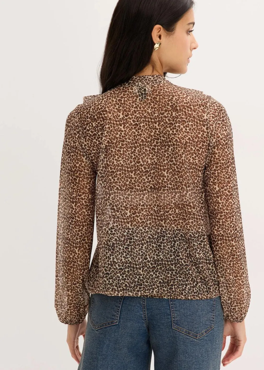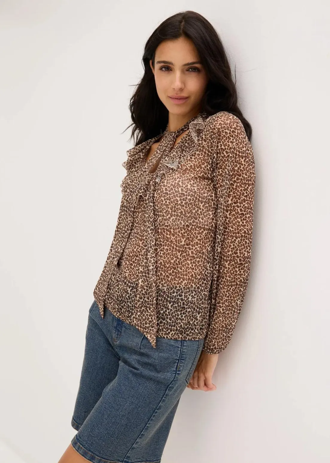 Leicht transparente bluse mit Volant und Schluppe zum Binden im angesagtem Animalprint