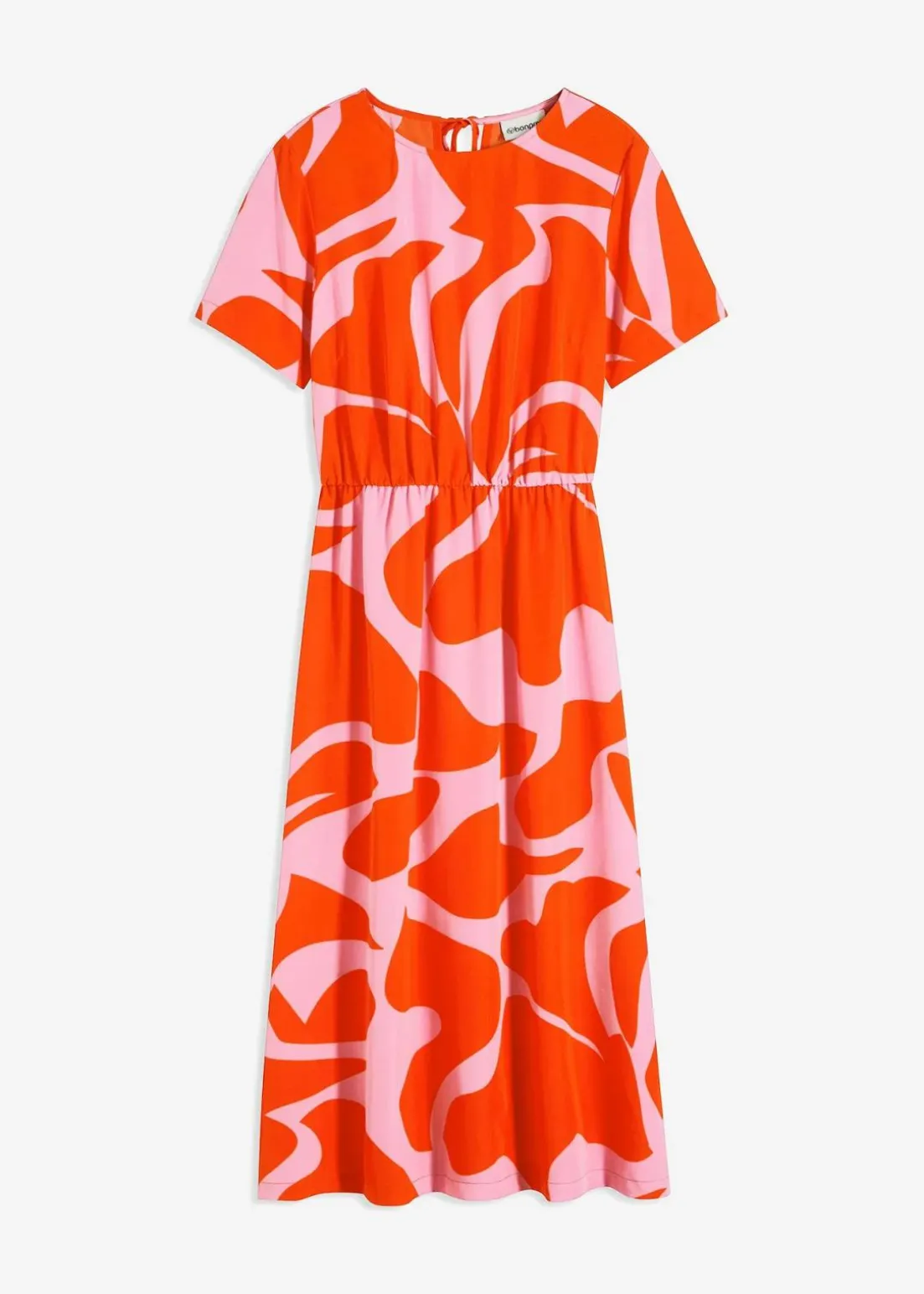 modisches Midikleid mit graphischem Print und ausgestelltem Rock