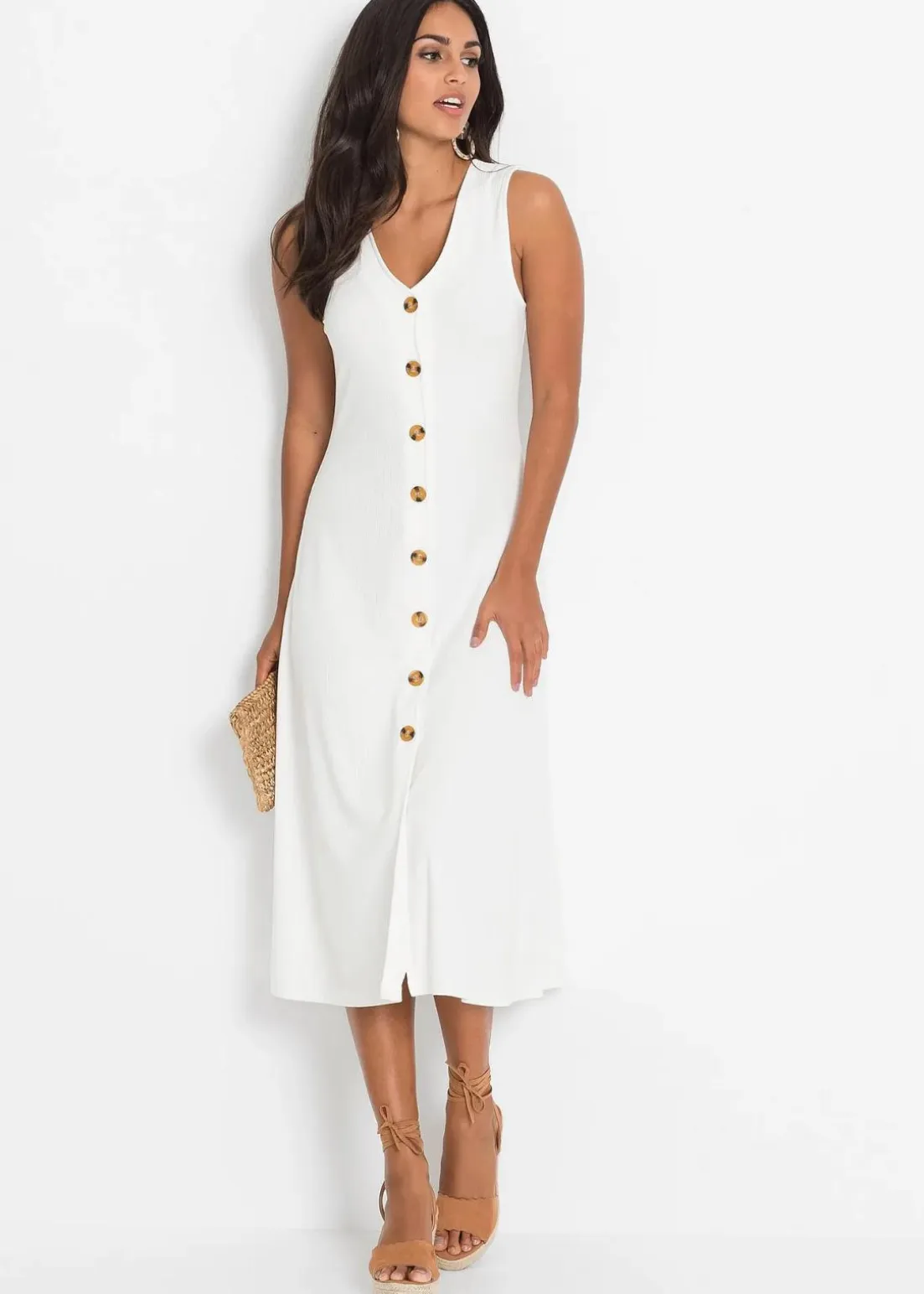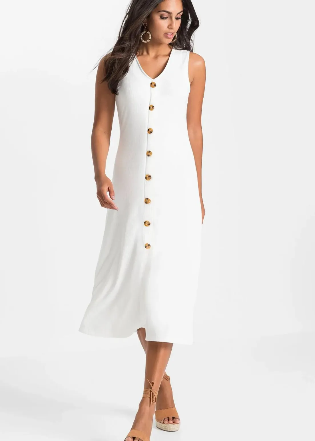 Ärmelloses Midi-Kleid in Rippoptik