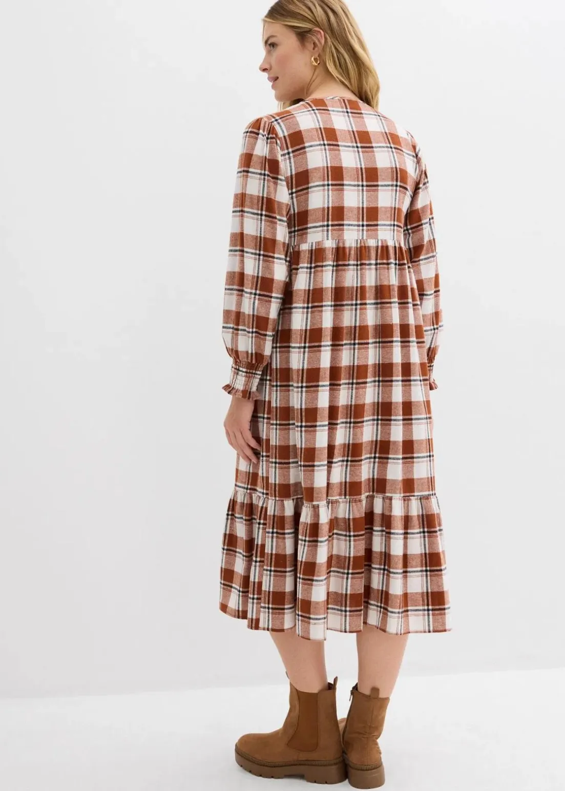 Midikleid in A-Linie aus reiner Baumwolle. Mit durchgängiger, vorderer Knopfleiste und elastischen Ärmelbündchen.