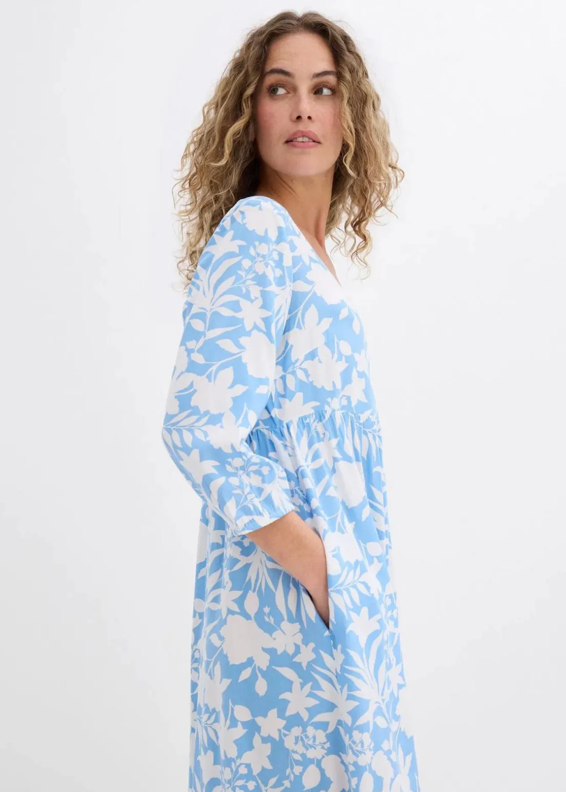 Leichtes fallendes Kleid mit betontem Dekolleté und Taschen
