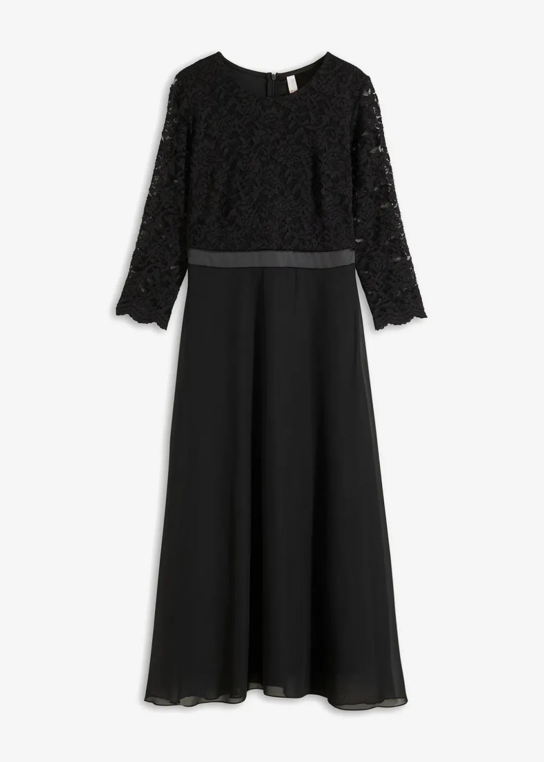 Romantisch und feminin: Ausgestelltes Midikleid aus leichtem Chiffon mit Futter und Spitze im Oberteil