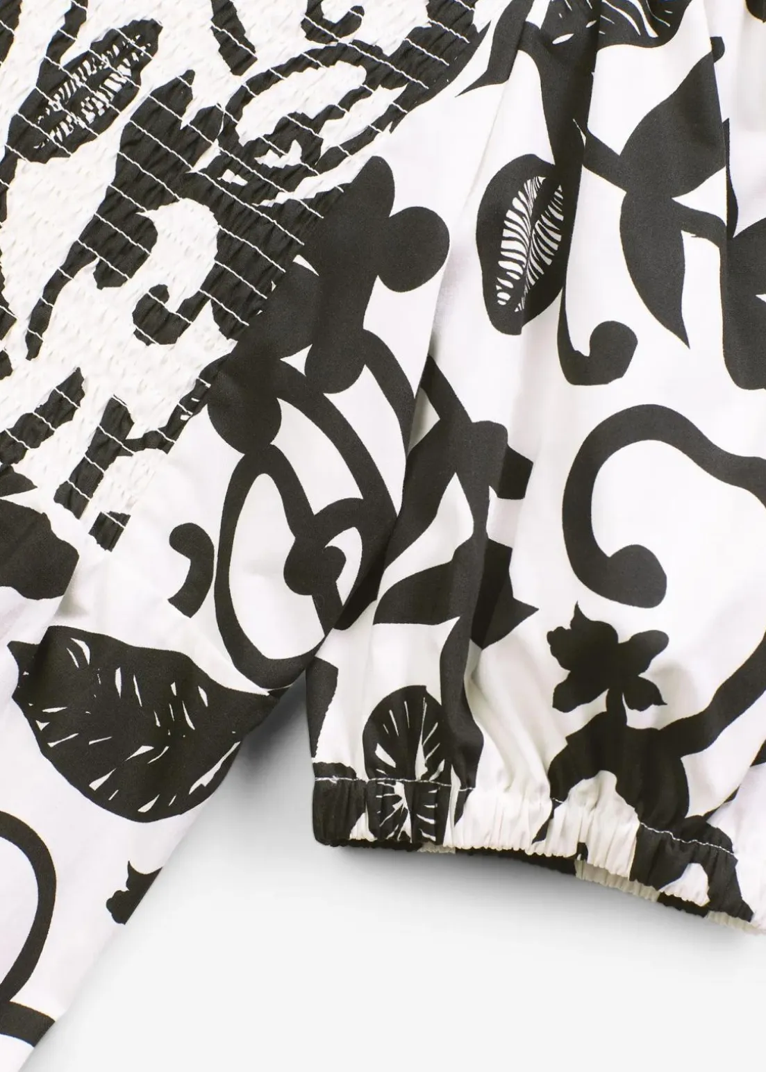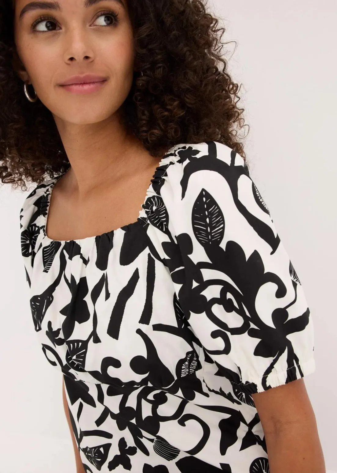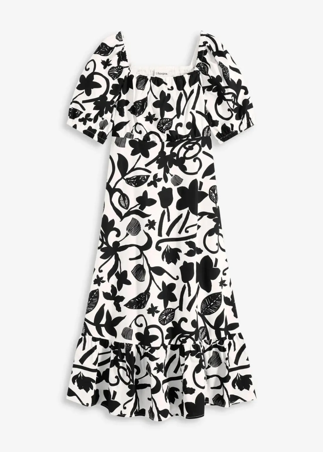 feminines Midikleid aus reiner Bio-Baumwolle mit Puffärmeln und gerafftem Oberteil