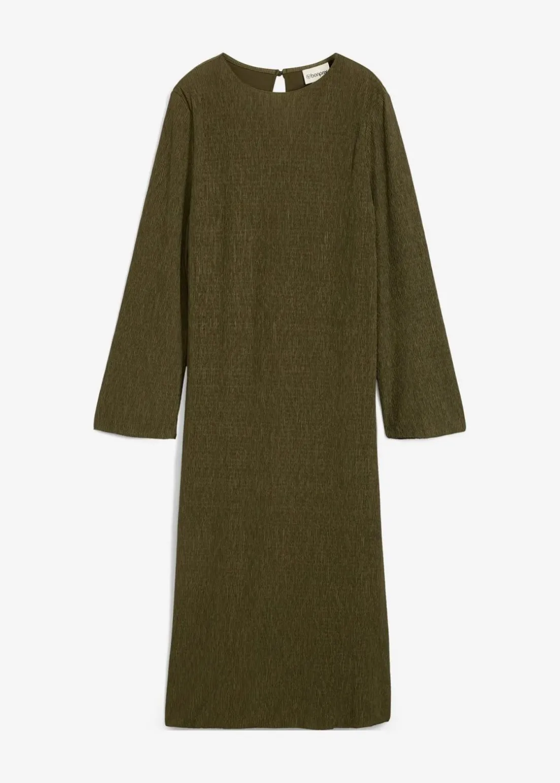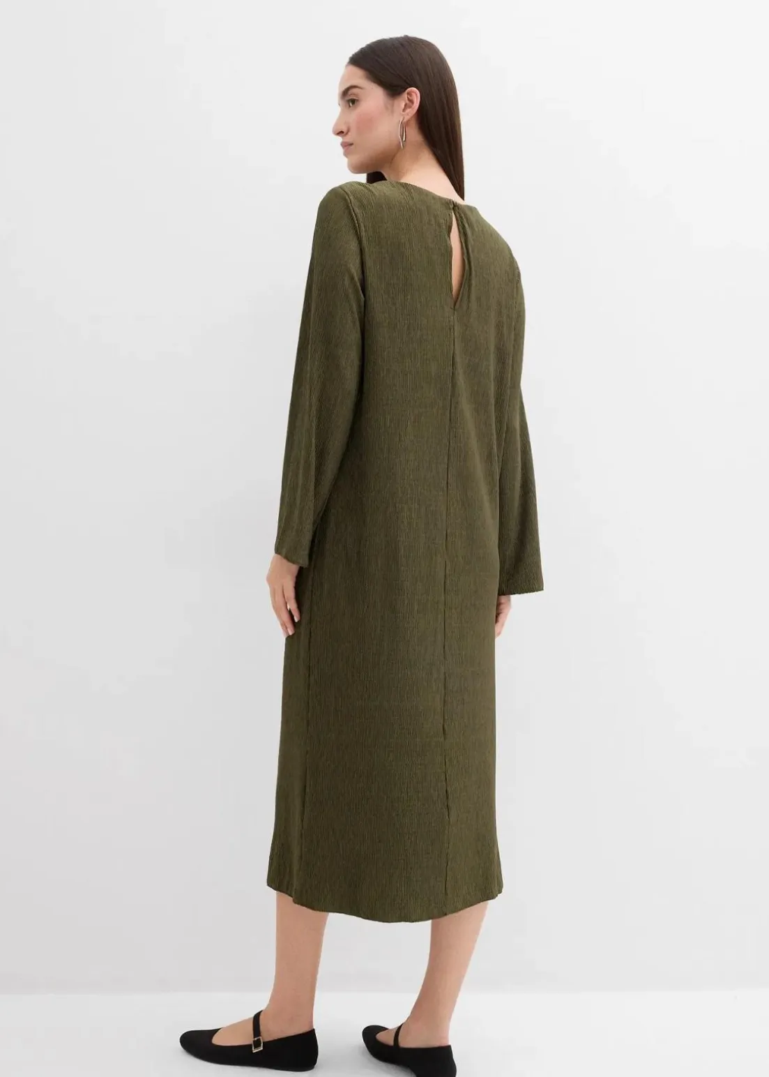 Gerade geschnittenes Kleid mit langem Arm, Schlüssellochöffnung hinten in Crinkle Optik