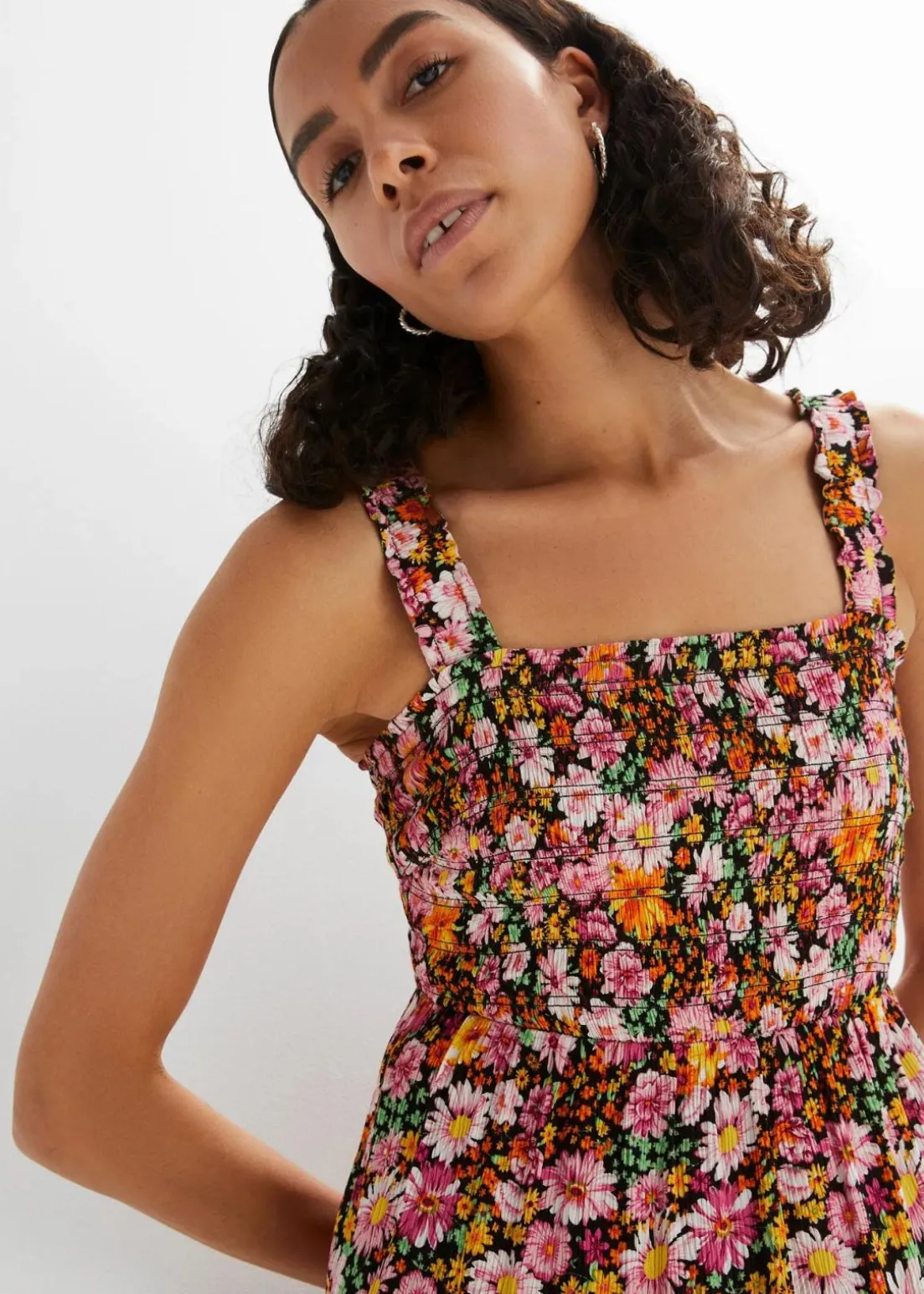 Modernes Kleid mit Smok und sommerlichem Print.