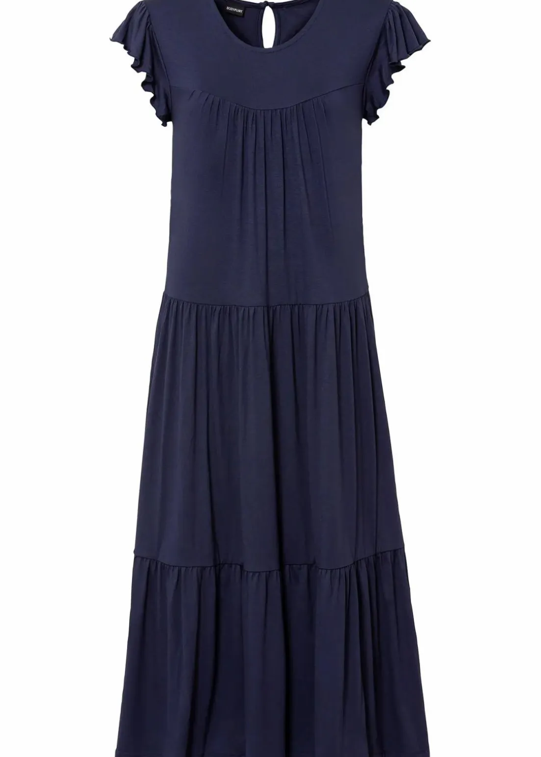 Modernes mittellanges Kleid mit Knopfverschluss im Nacken