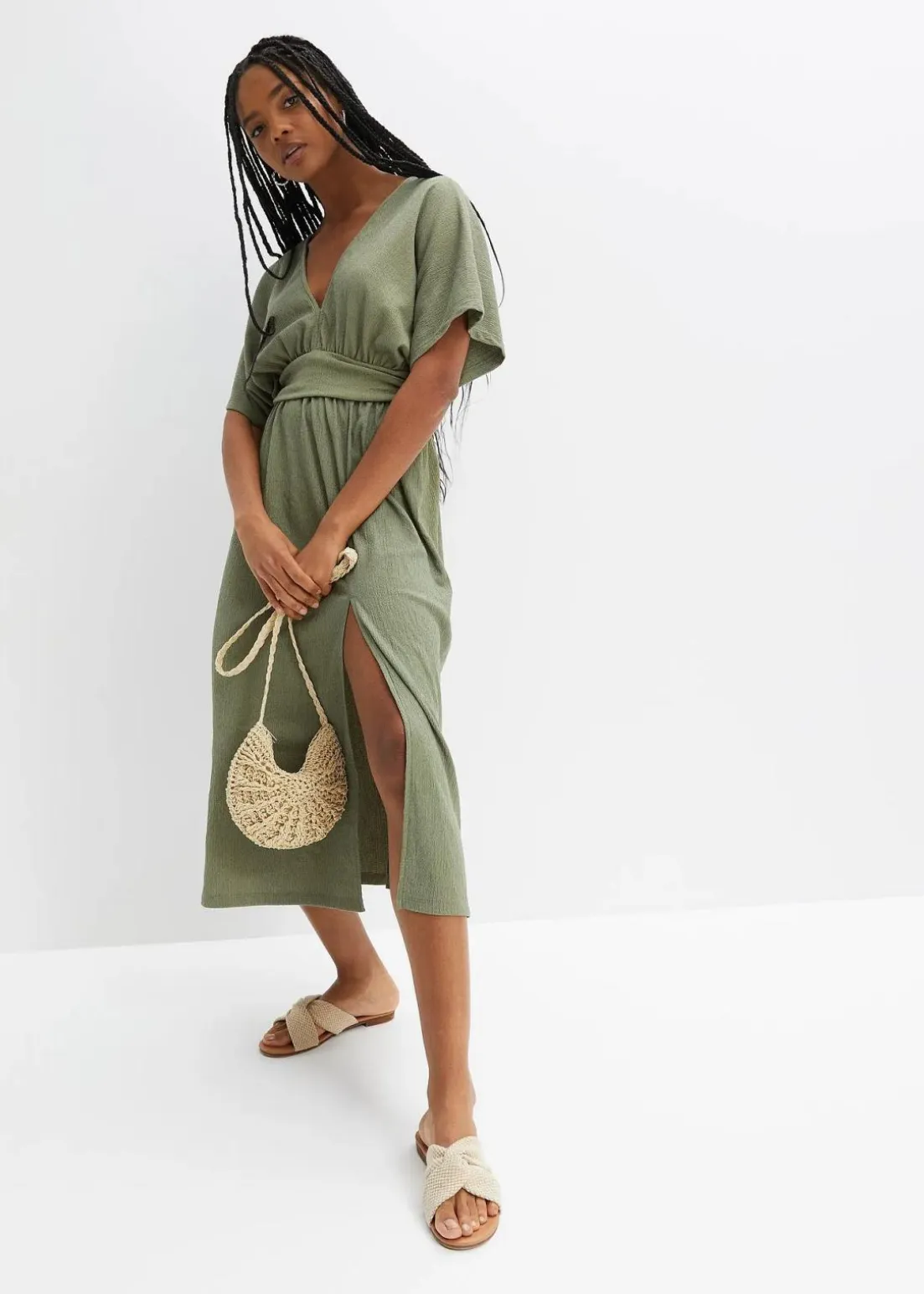 Midikleid mit tiefem V-Ausschnitt