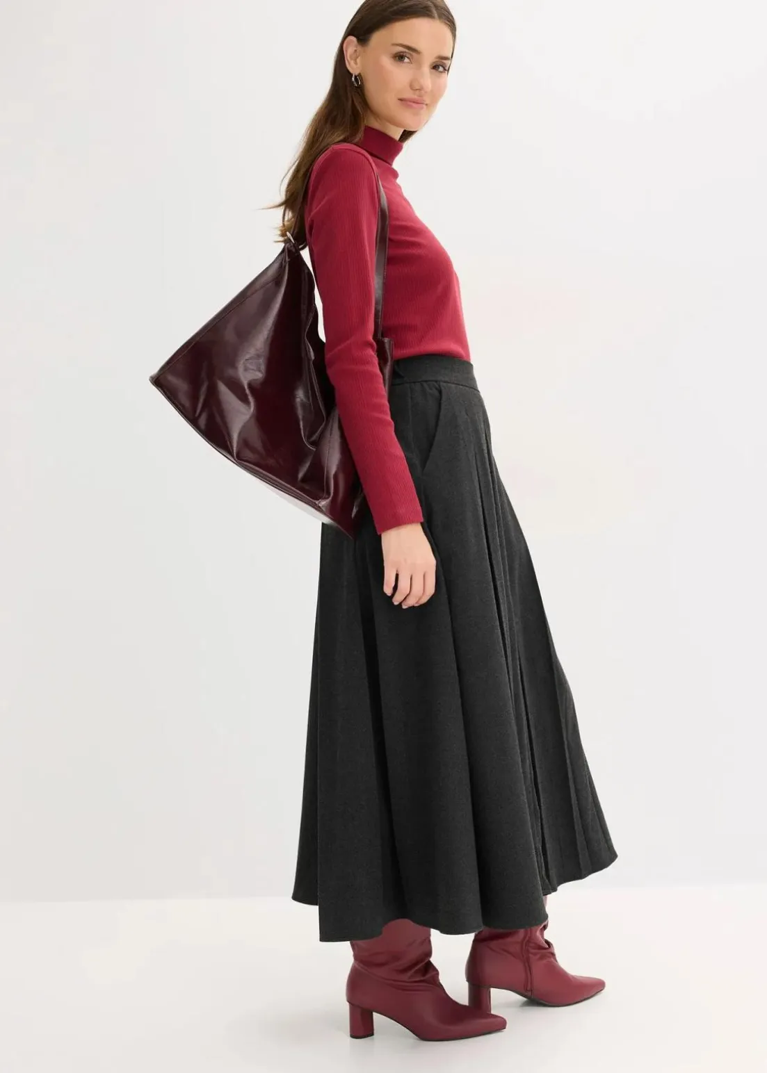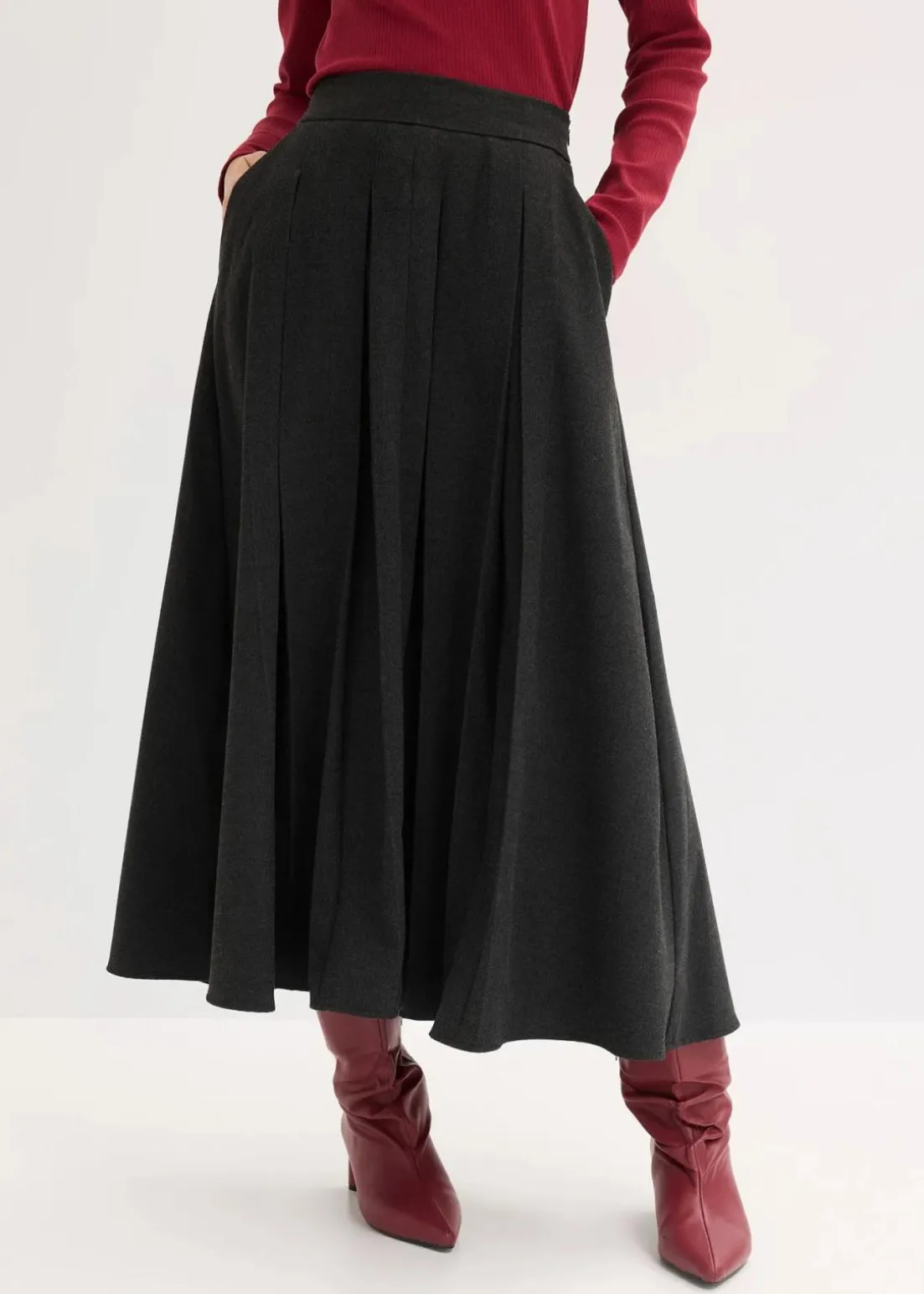 Faltenrock in Midi-Länge mit seitlichen Taschen