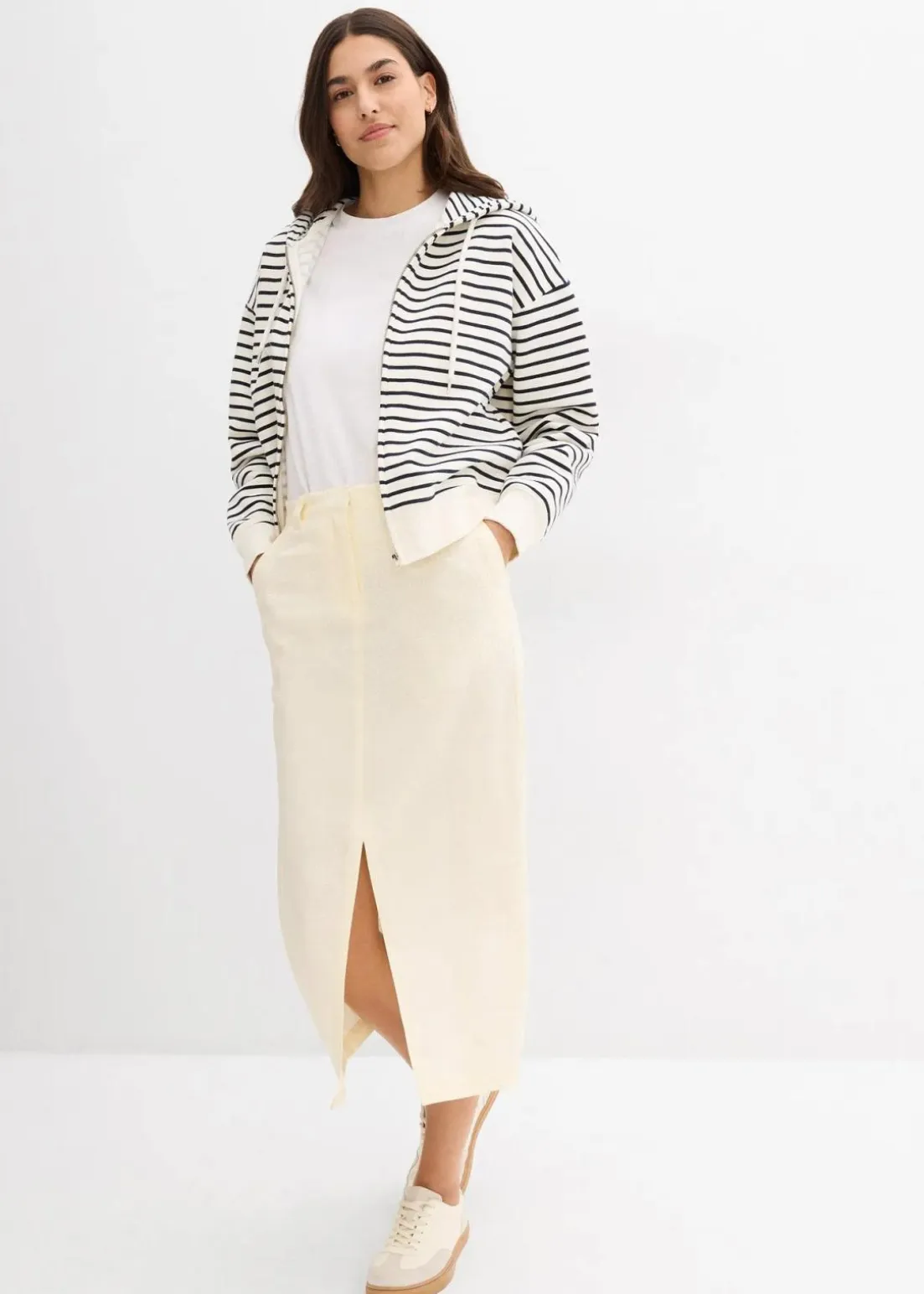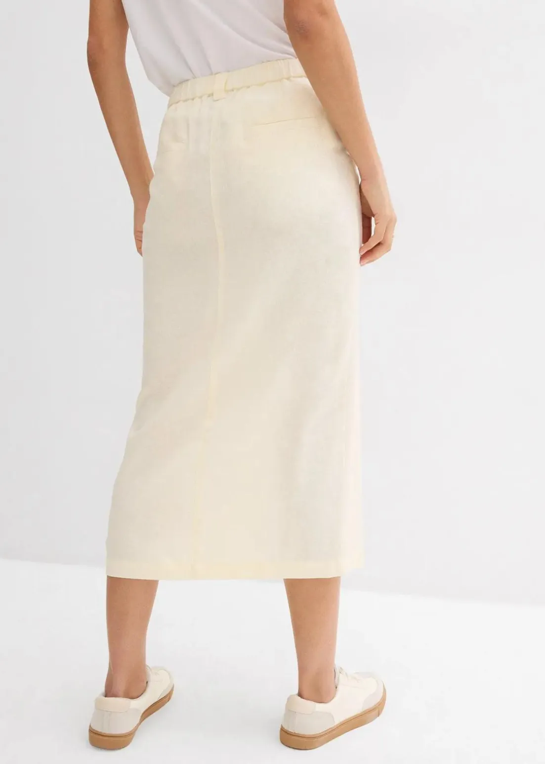 Midi-Rock mit Schlitz vorne, sowie Taschen und elastischem Bund hinten