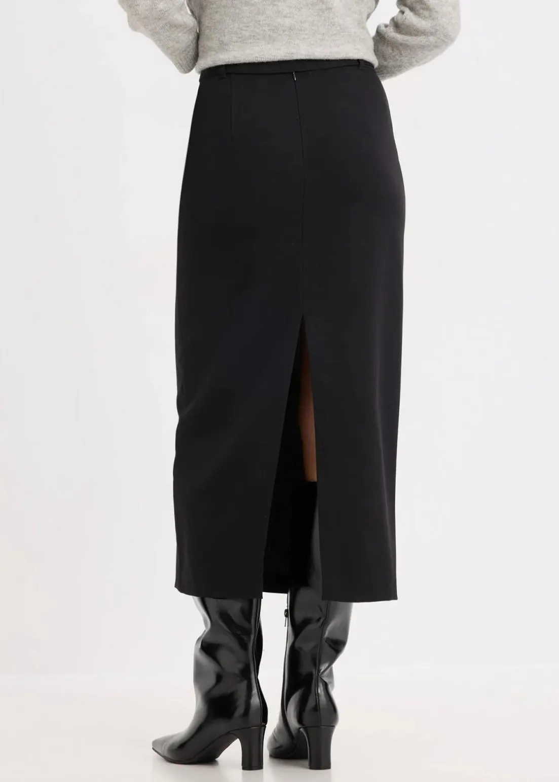 Langer schmaler Rock mit Bindegürtel und Zierschnalle