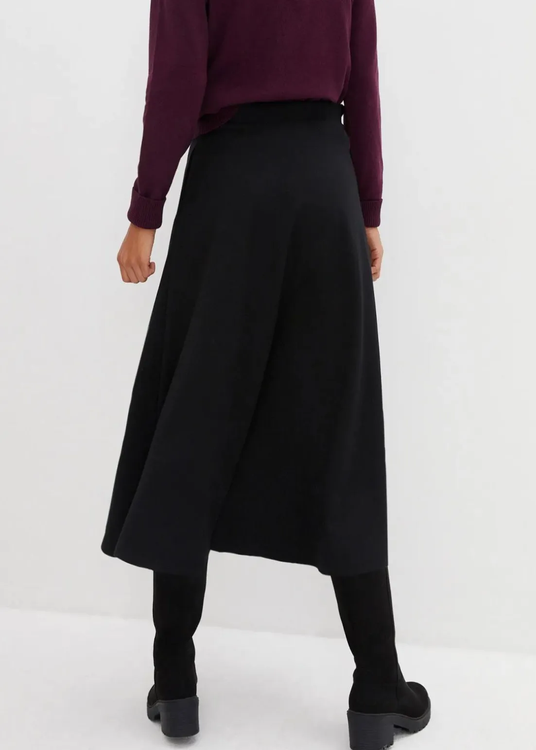 Ausgestellter Rock mit Elastikbund umspielt die Figur