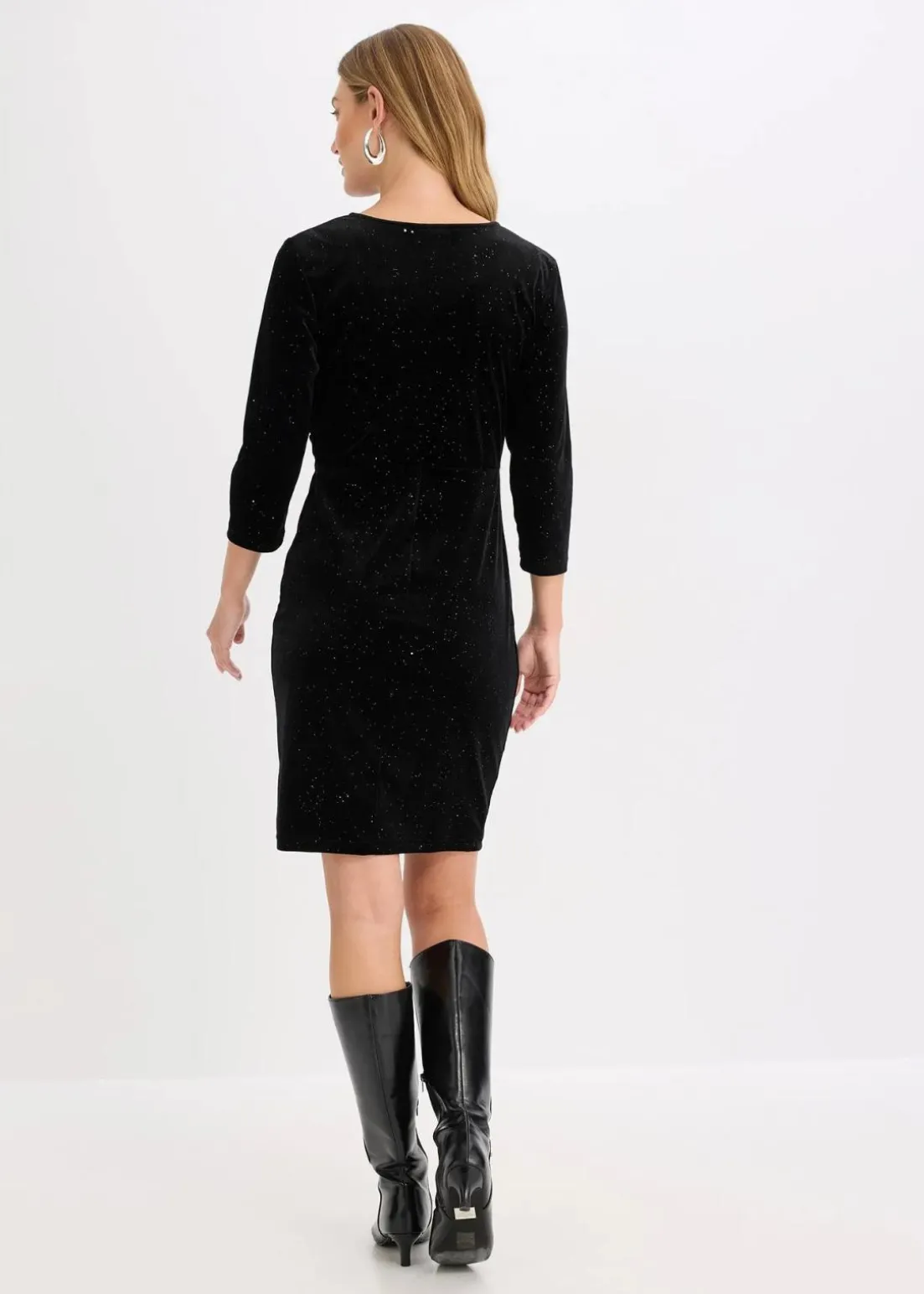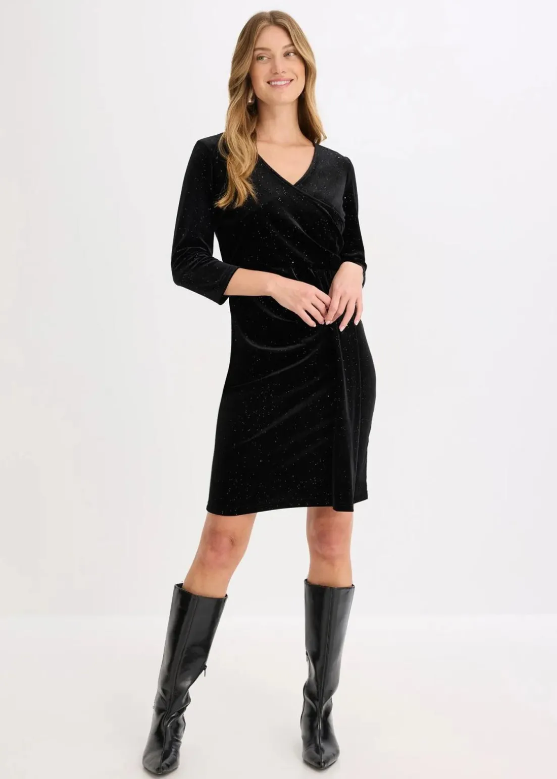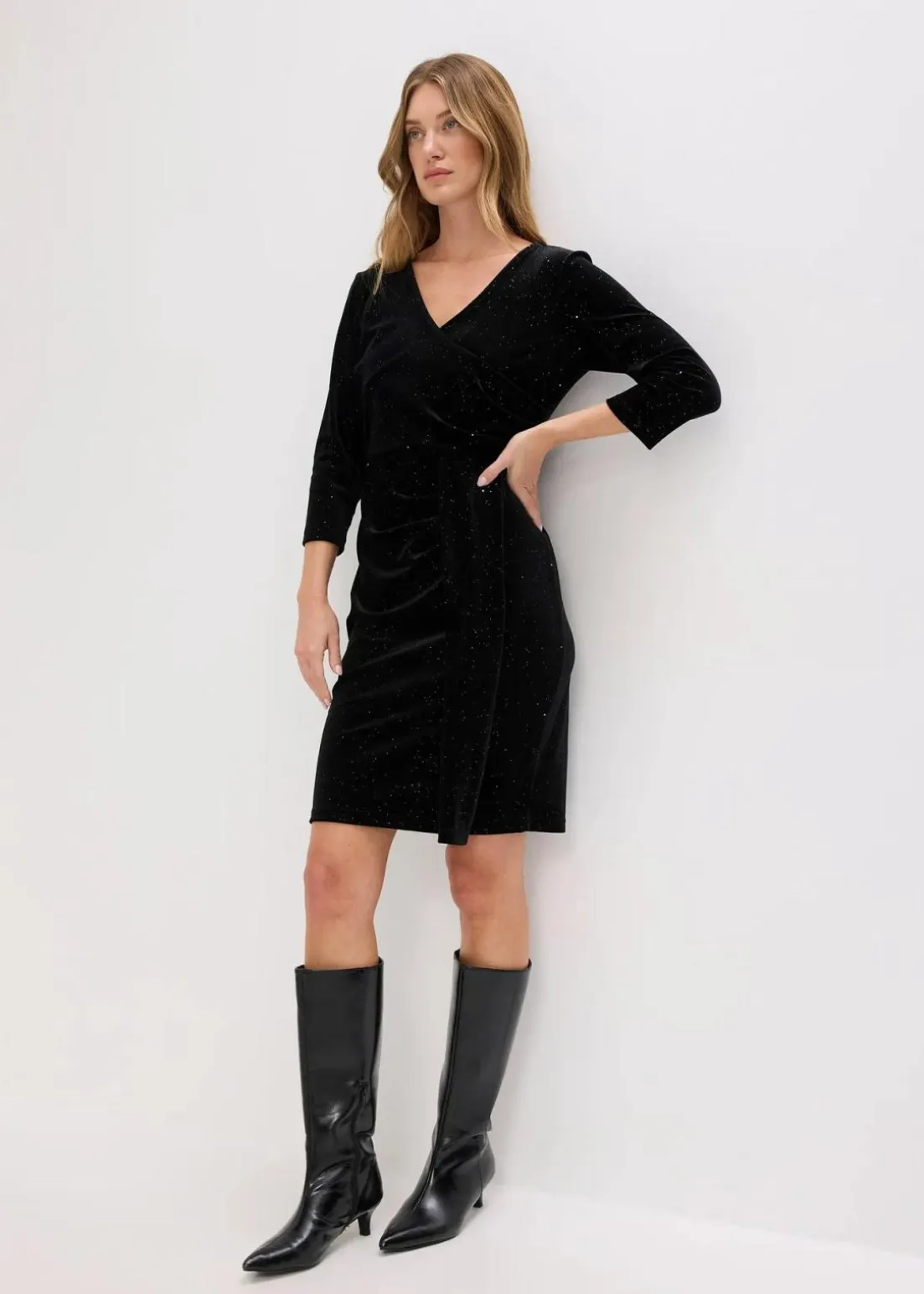 Modern und feminin: Samtkleid in Wickeloptik mit besetzten Strasssteinen und Raffungsdetails machen dieses Kleid perfekt für besondere Anlässe.