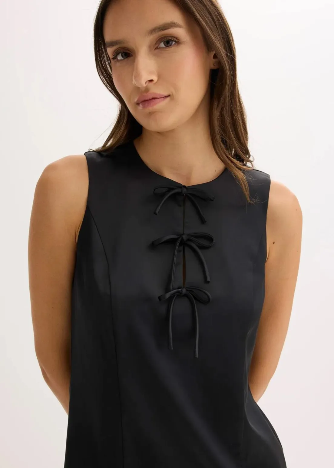 Kurzes Kleid mit figurbetonenden Nähten und Schleifen am Ausschnitt
