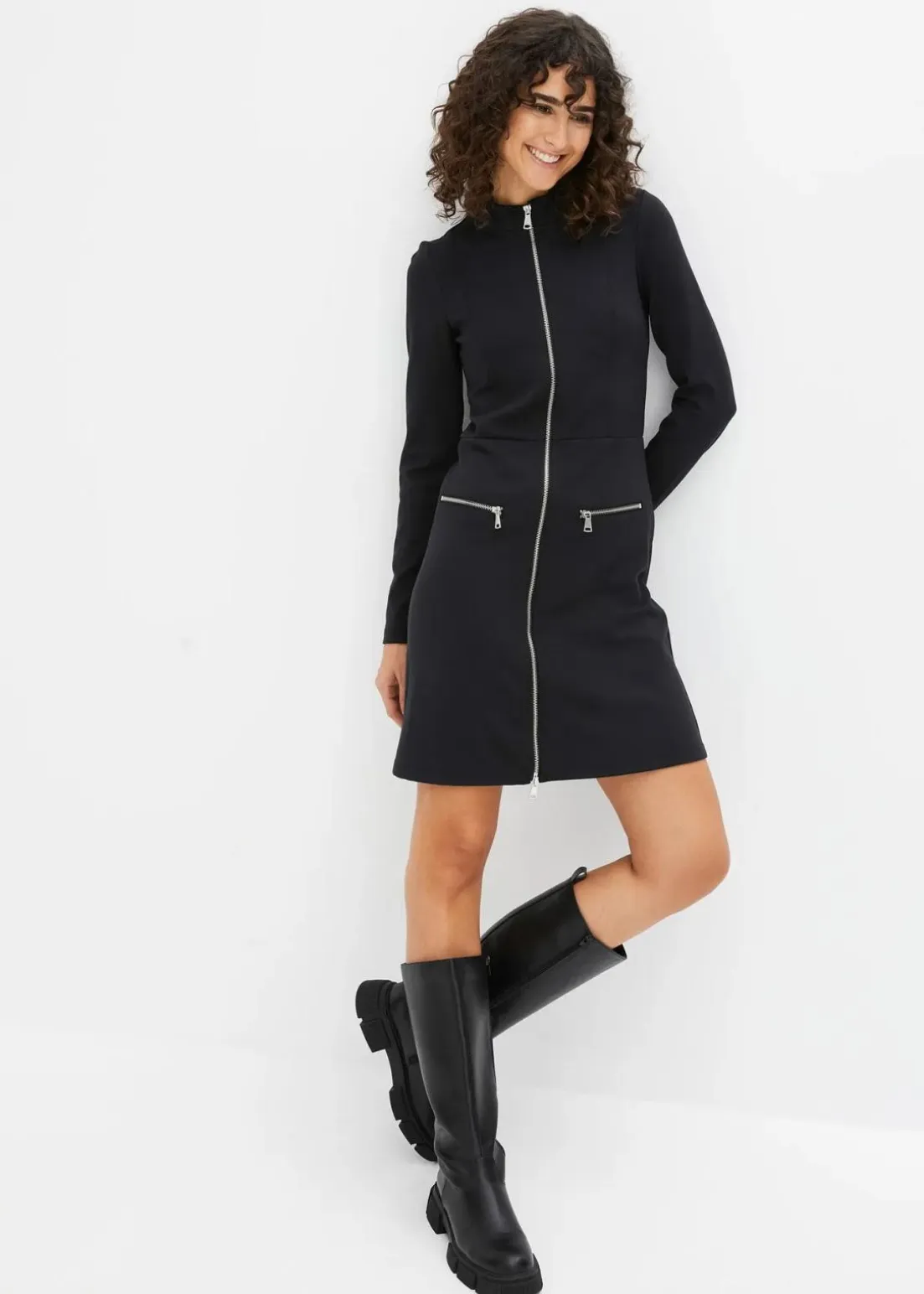 Kleid aus Punto di Roma mit Reißveschlussdetail und leichtem Stehkragen