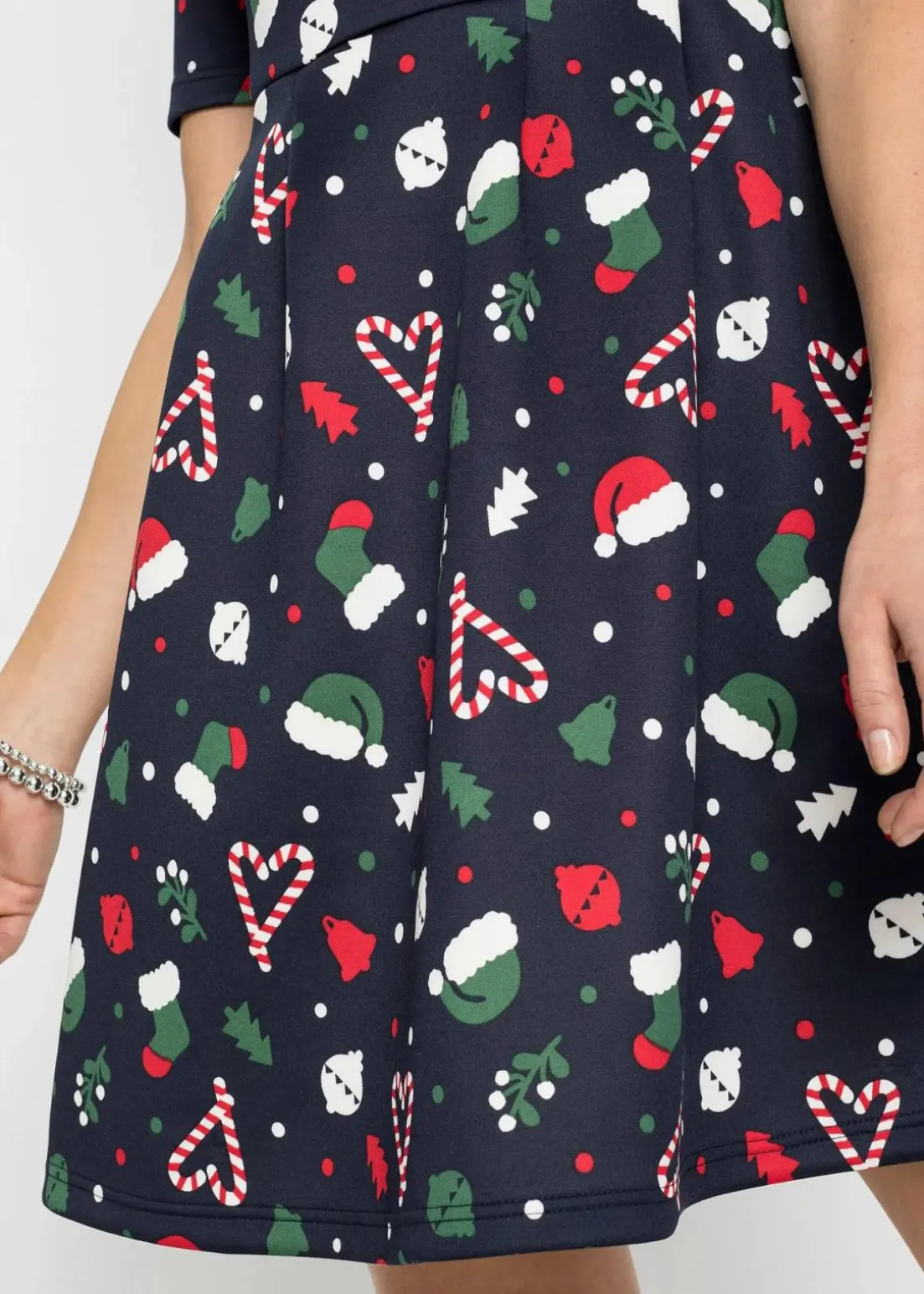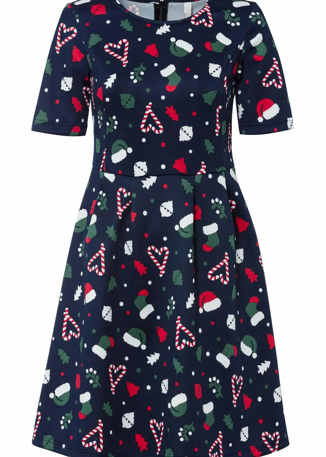 Charmantes Kleid mit A-förmiger Passform und halben Arm und süßem Weihnachtsmotiv