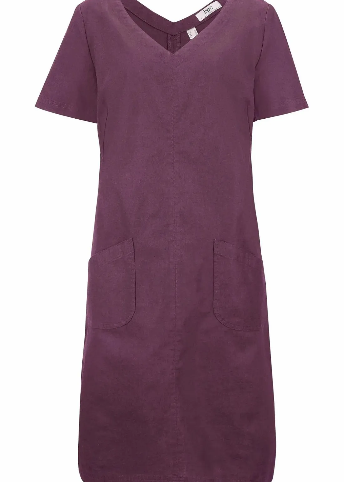 Knielanges Kleid mit V-Ausschnitt und Leinen