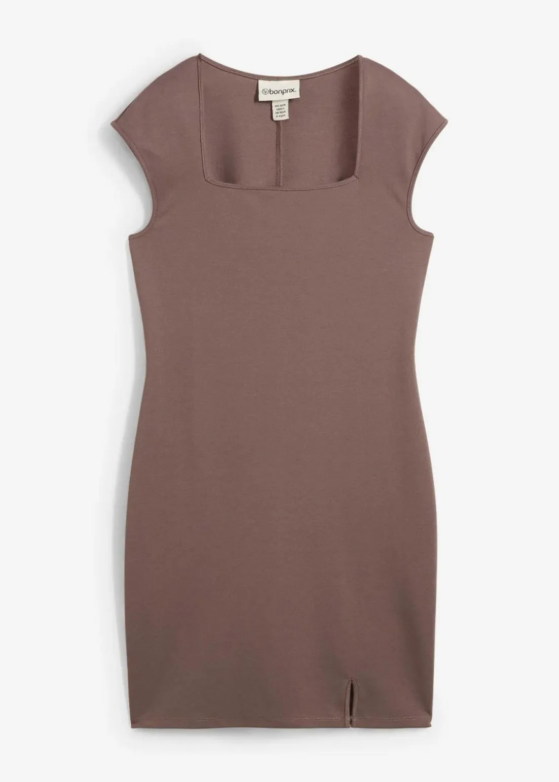 Figurbetontes Minikleid mit Schlitz und Carré-Ausschnitt