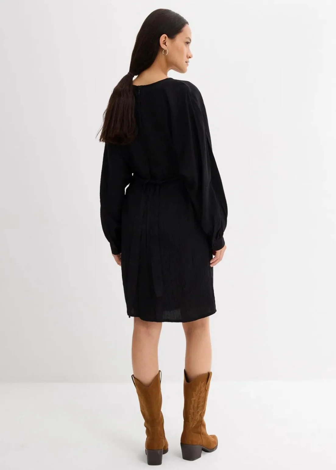 Kleid aus strukturierter Ware mit Gürtel in der Taille sowie einer Reißverschlussöffnung hinten