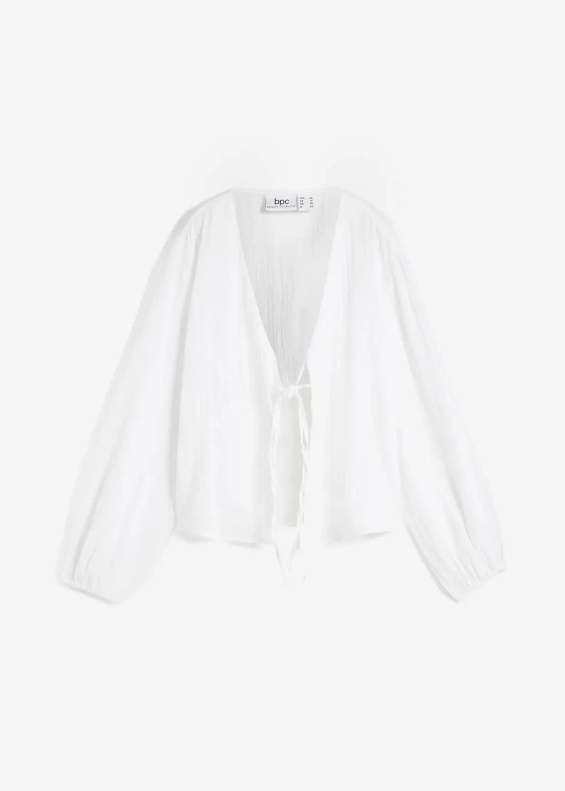 Moderner Bolero aus Musselin mit Ballonärmeln und Bindeband