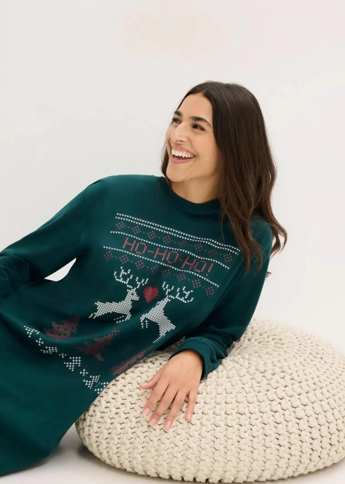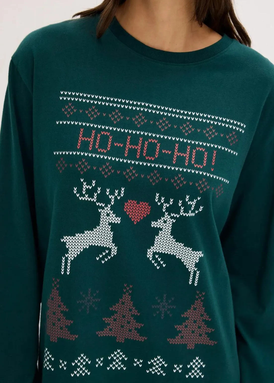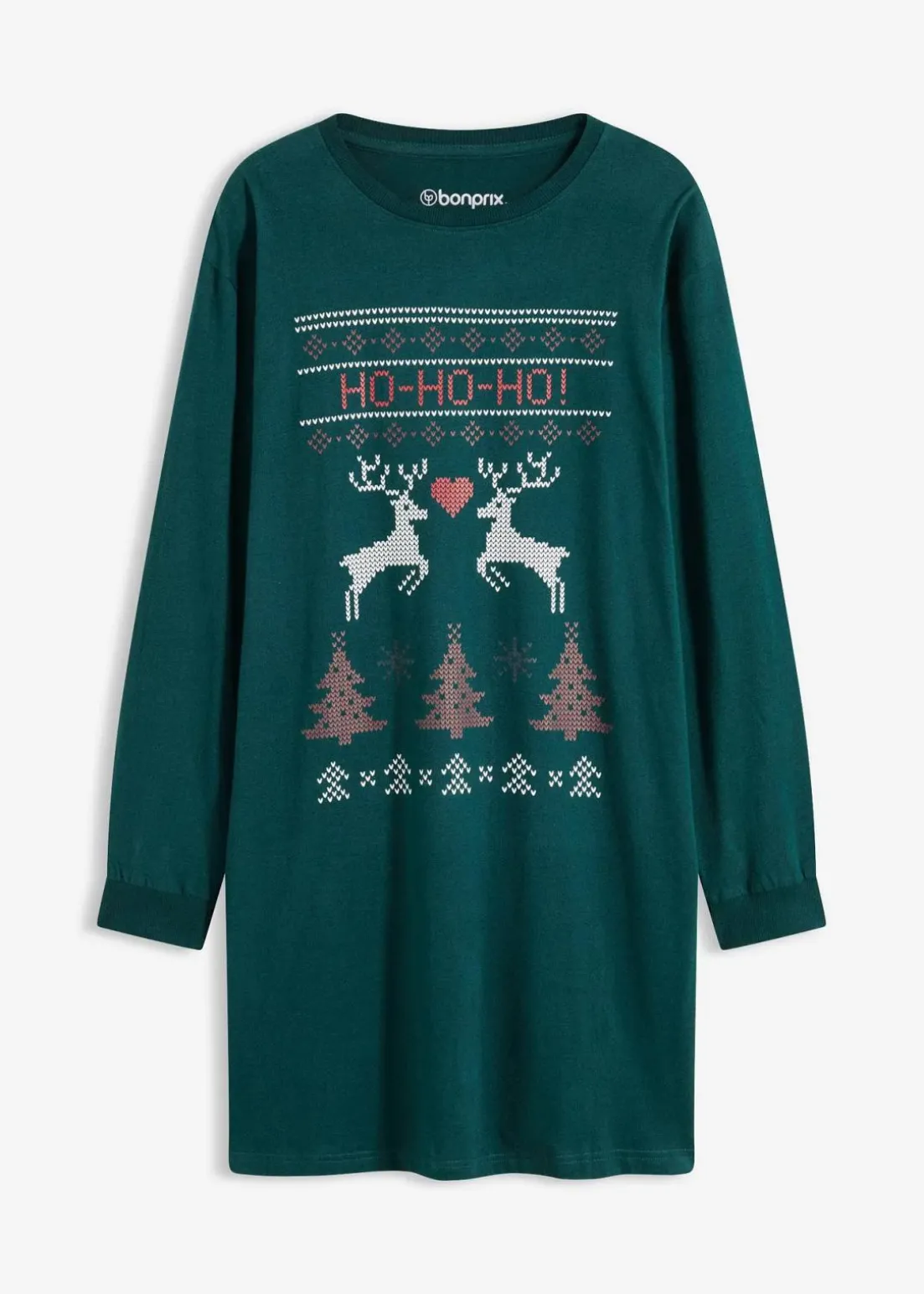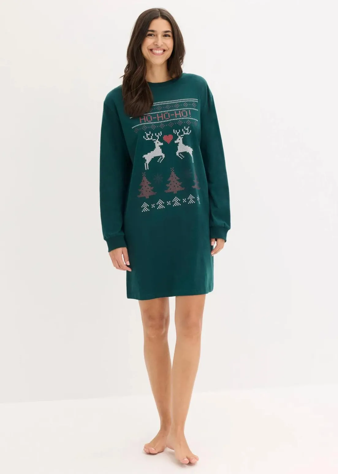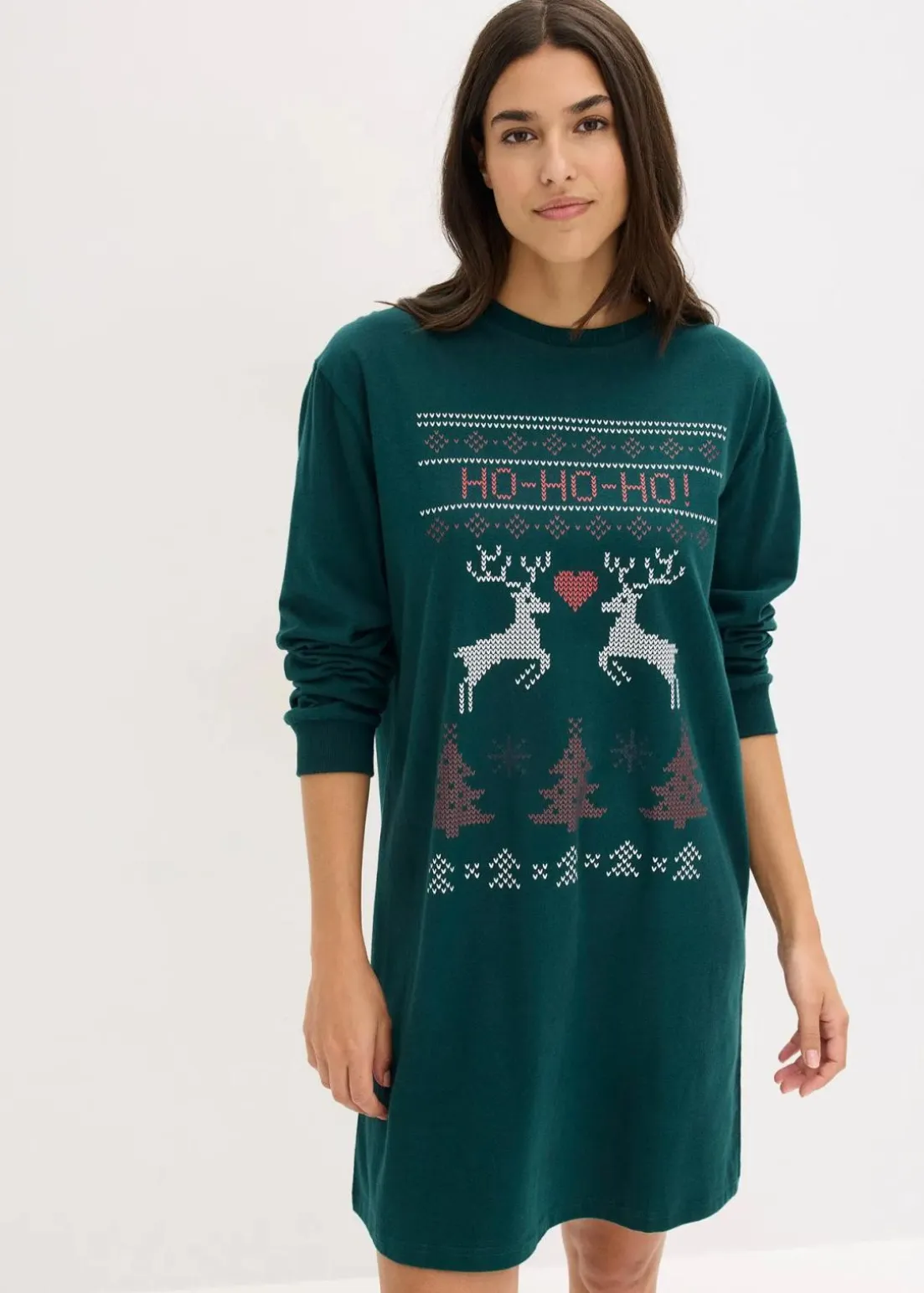 Gemütliches Nachthemd mit schönem weihnachtlichen Druck und Rippbündchen am Halsausschnitt sowie am Ärmelsaum