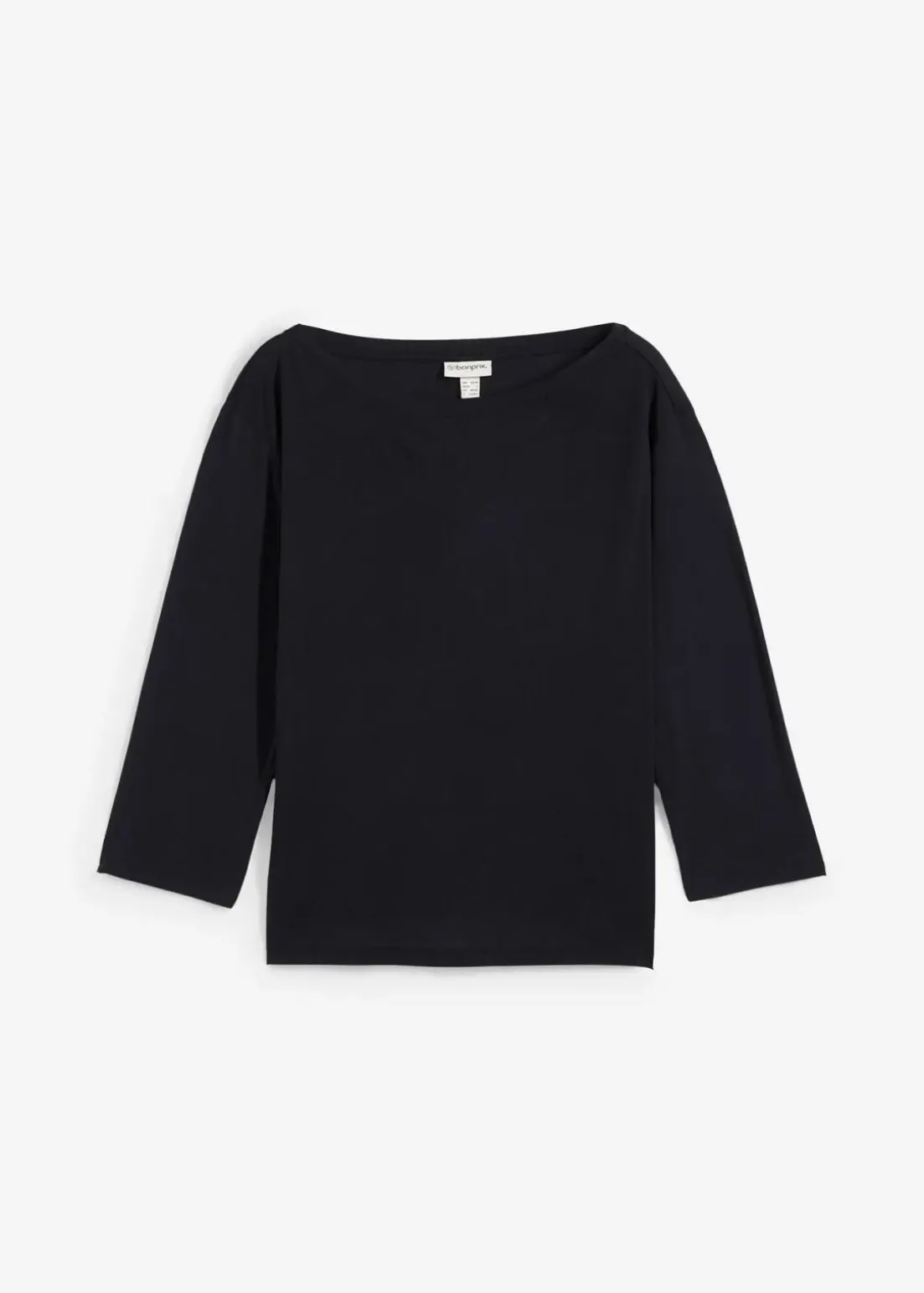 Off-Shoulder Shirt mit langem Arm und asymmetrischem Saum aus einem Modal-Mix