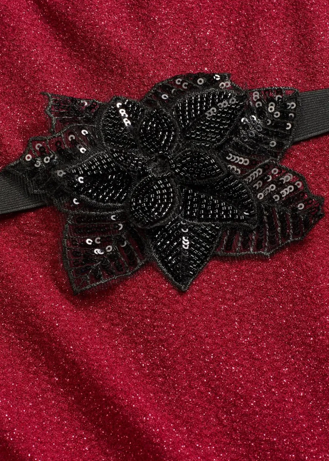 Glamourös und feminin: Abendkleid mit One-Shoulder-Ausschnitt und Glitzer in Maxi-Länge mit Blumen-Applikation an der Taille