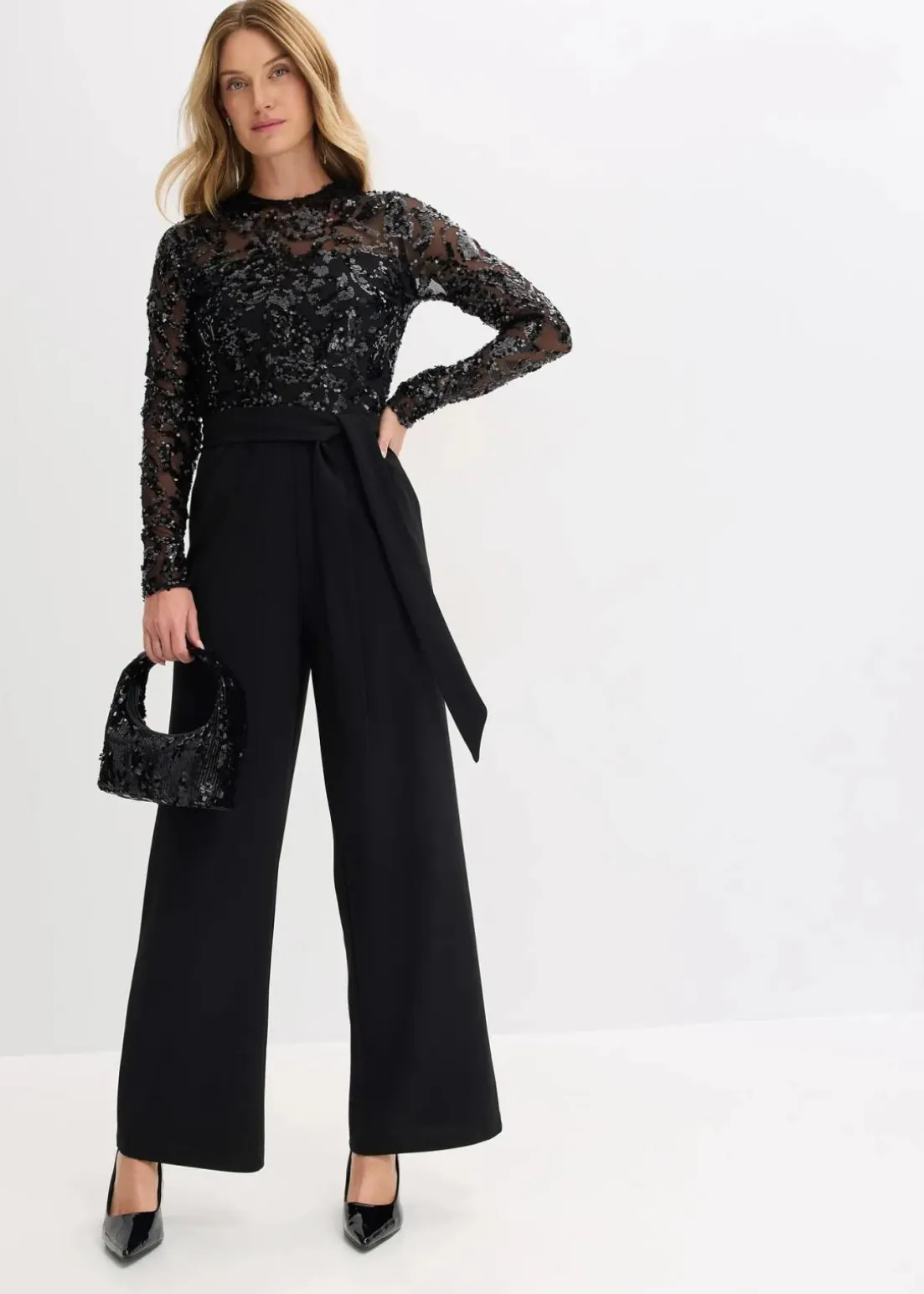 Modern und feminin: Overall mit Paillettenstickerei und Binde-Detail in der Taille