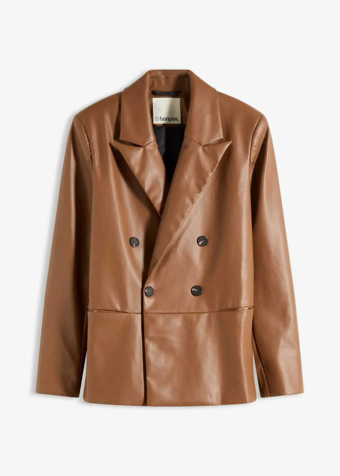 Doppelreihiger Blazer mit Taschen aus softem Lederimitat