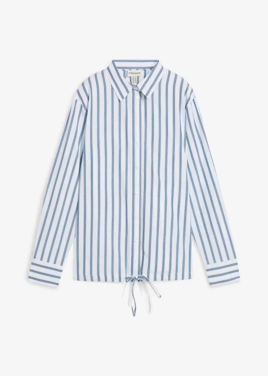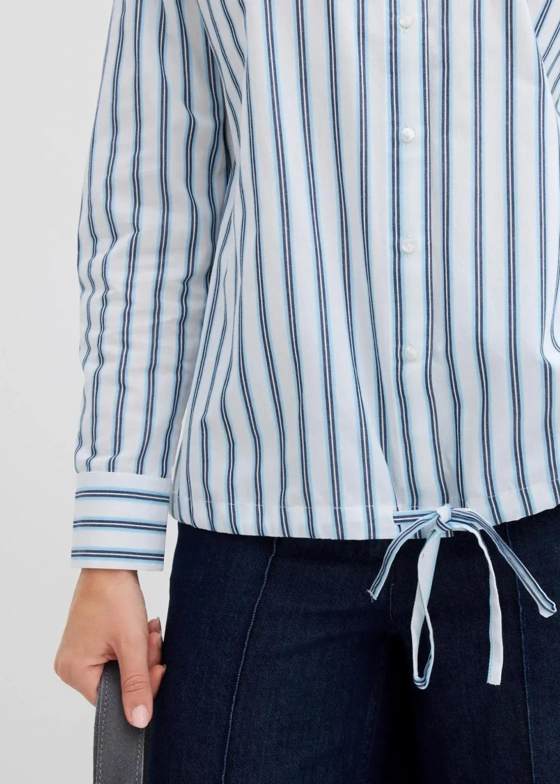 Gestreifte Bluse mit vorderer Knopfleiste und Tunnelzug am Saum.