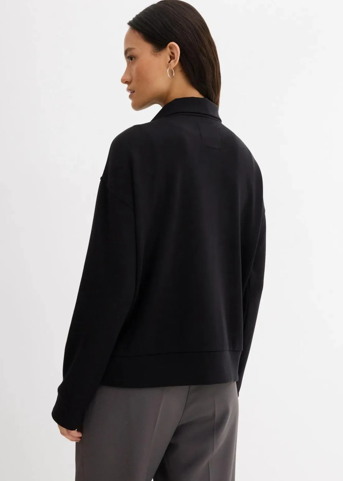 Oversize Jacke aus Scuba mit Stehkragen, Frontreißverschluss, überschnittenen Schultern und Leistentaschen vorne
