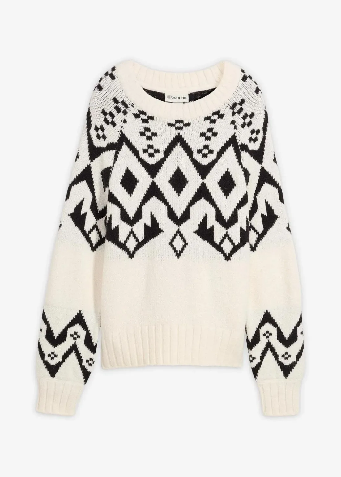 Modischer Oversize Norweger-Pullover in monochromer Optik