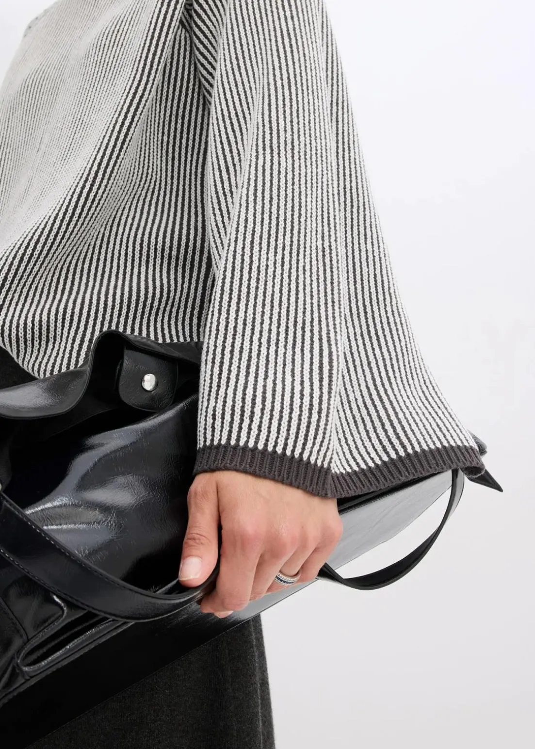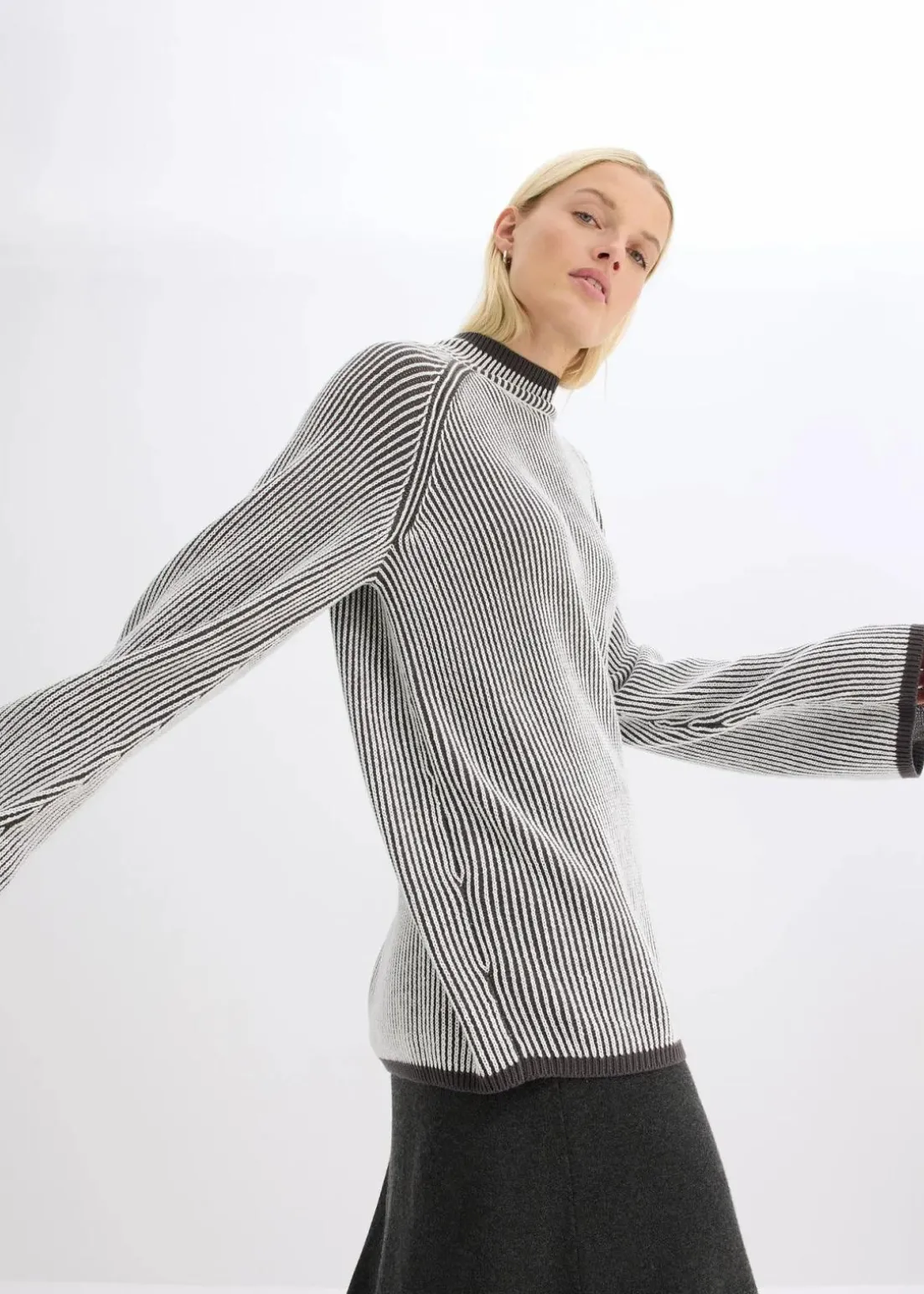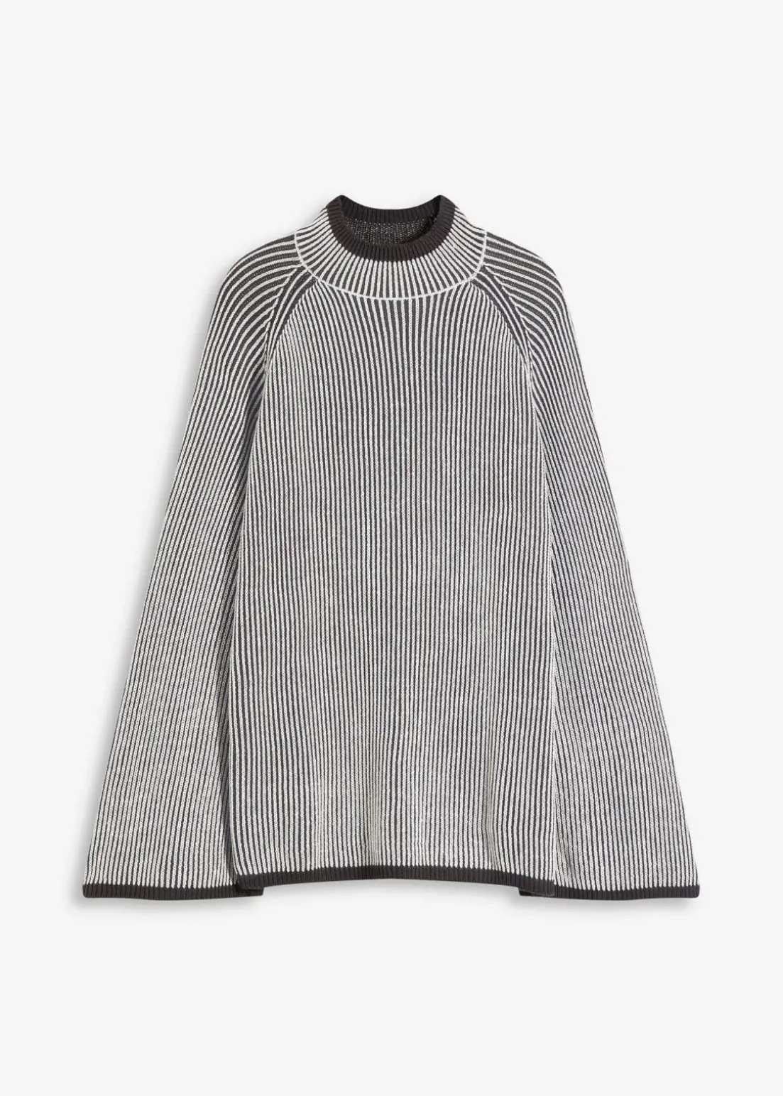 Oversize Grobstrickpullover mit Stehkragen, gestreift