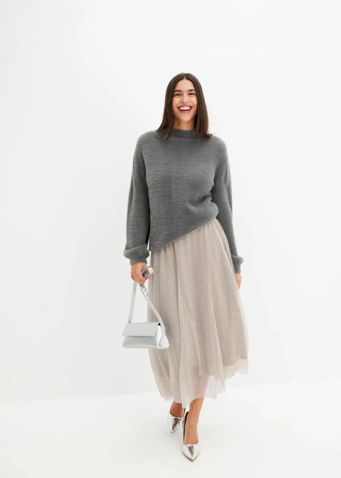 Modischer Oversize-Strickpullover mit tiefem Rückenausschnitt
