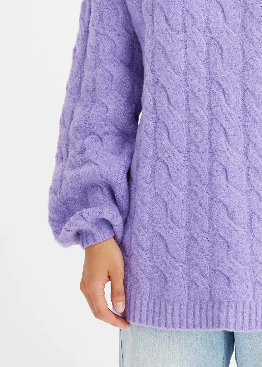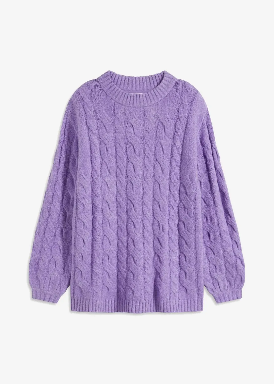 Strickpullover mit Ballonärmeln und Zopfmuster