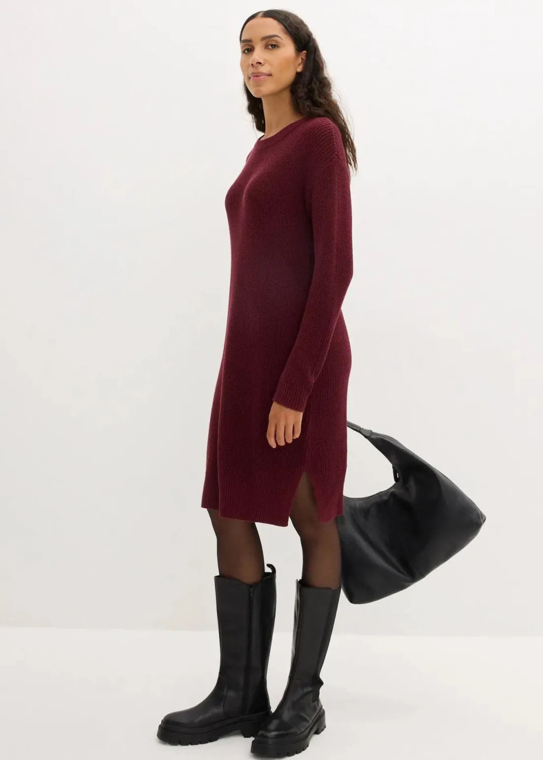 Weites Ripp-Strickkleid mit seitlichen Schlitzen für mehr Komfort