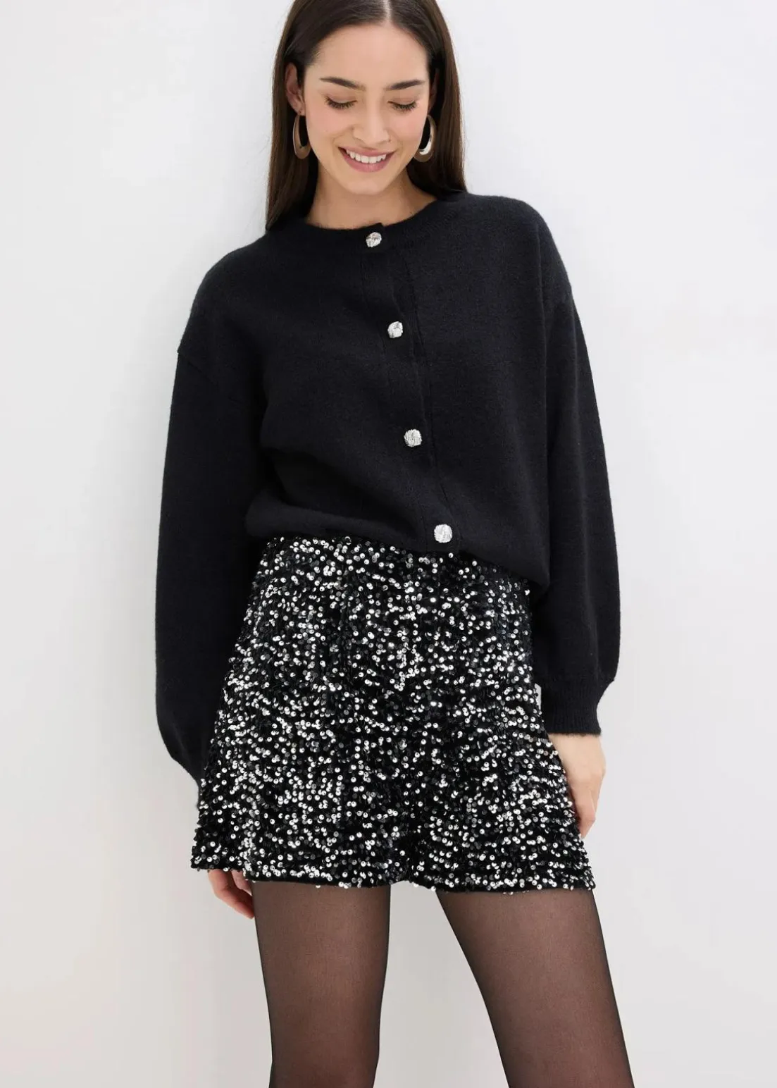 modische Pailletten-Shorts mit Haken- und Ösen-Verschluss vorne