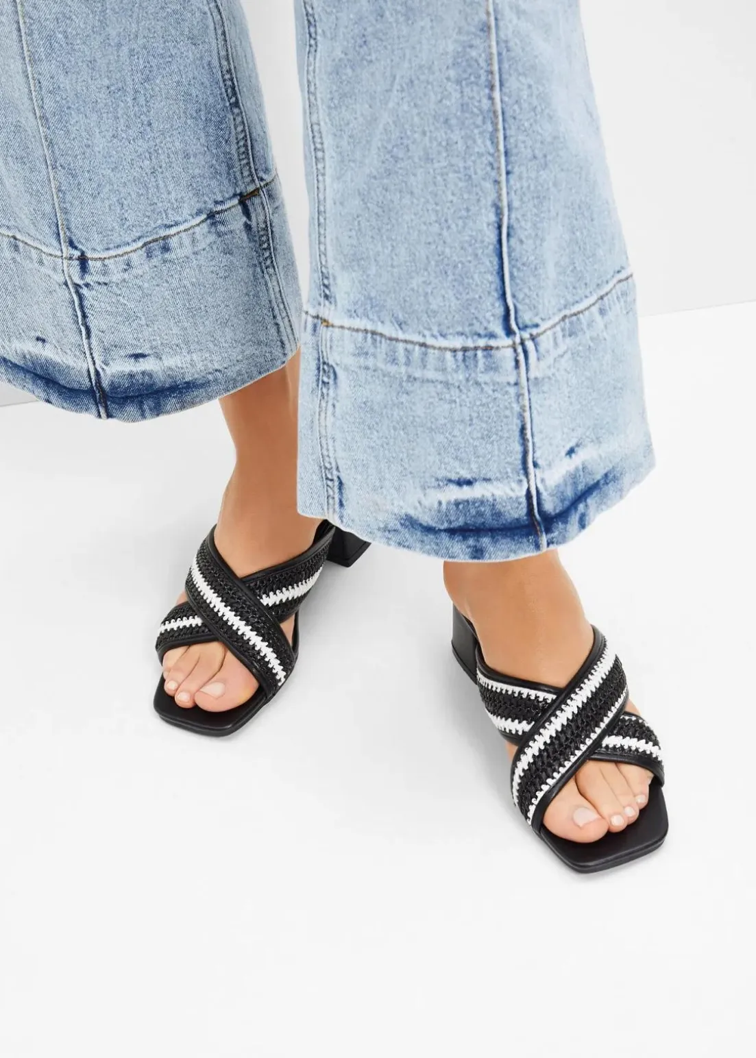 Sommerliche Absatz-Pantolette mit Flechtdetails