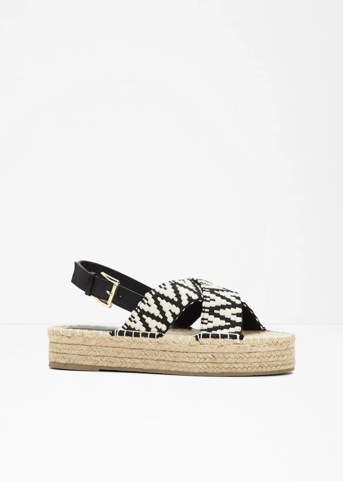 Sommerliche Plateau Sandale mit Details in Bastoptik