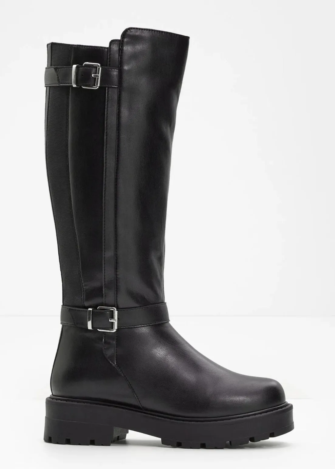 Warmgefutterter Stiefel mit dekorativen Schnallen und Elastik-Einsätzen